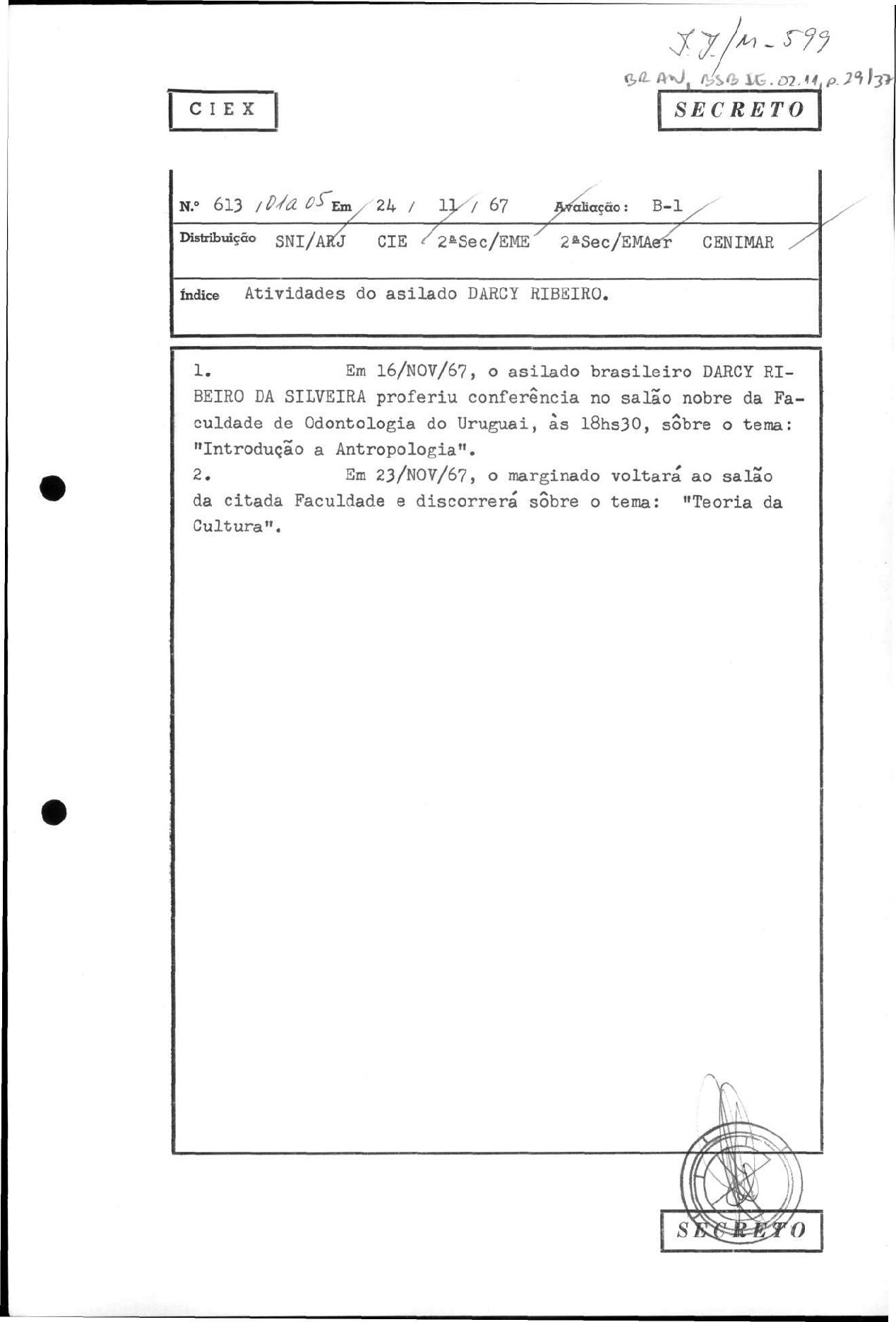 CIEX 613 : Atividade s do asilad o DARCY RIBEIRO
