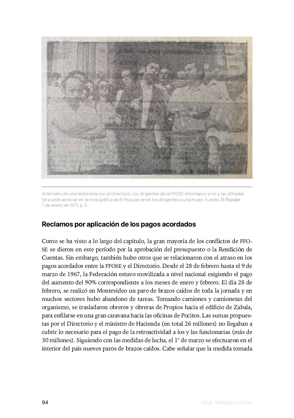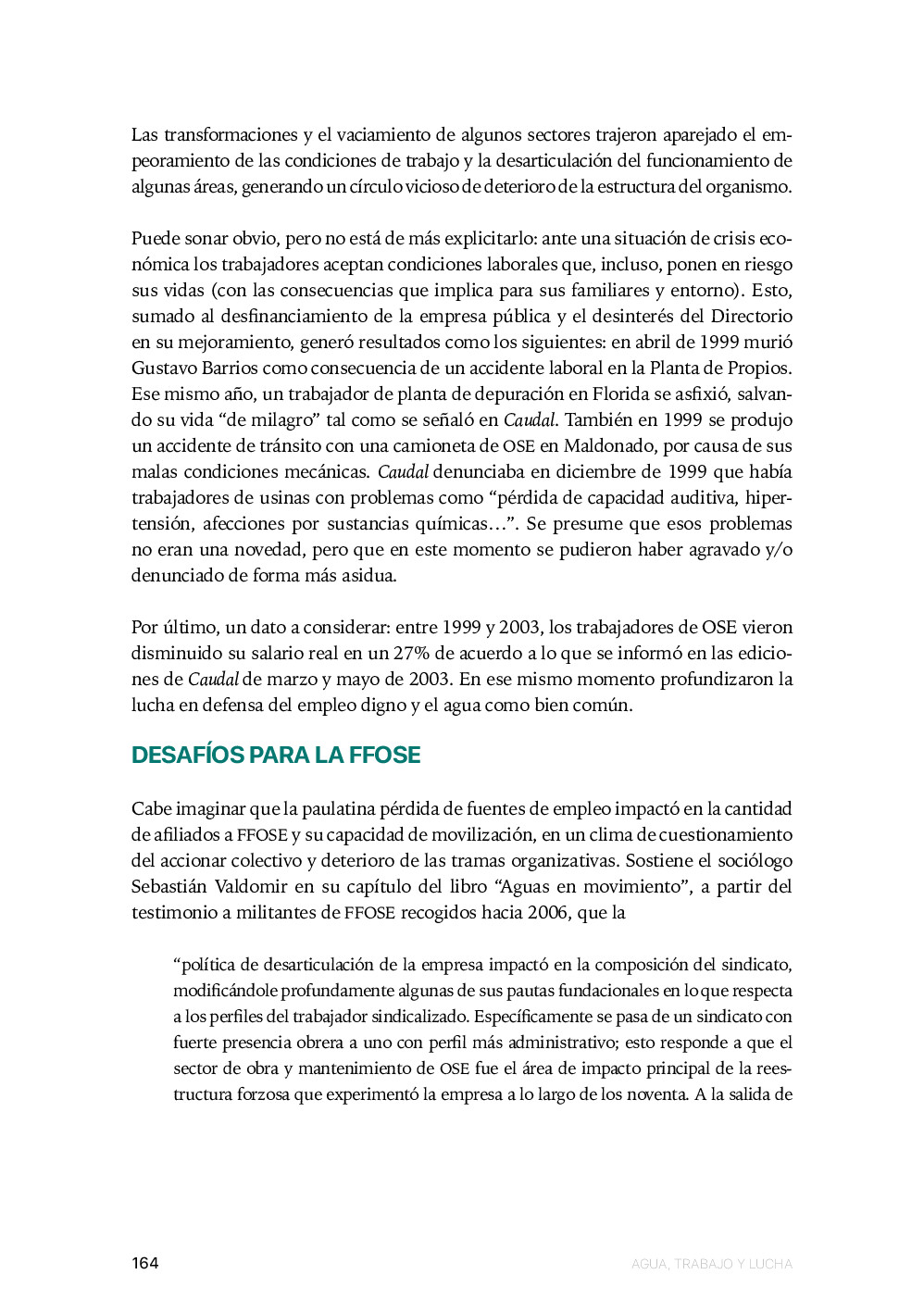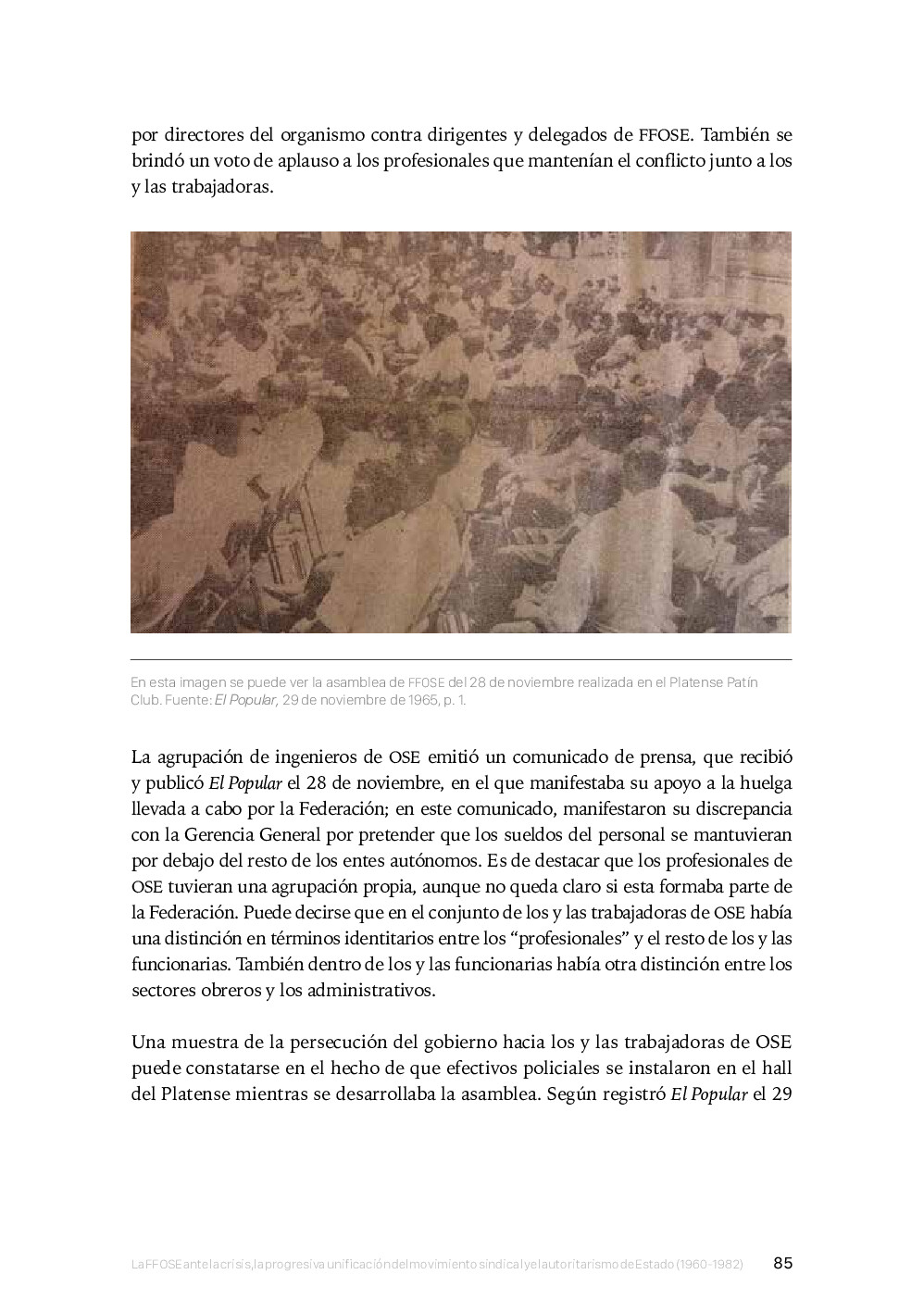 La Federación de Funcionarios de O.S.E. (FFOSE), fundada en 1946, es el sindicato único de los trabajadores de la Administración de las Obras Sanitarias del Estado (OSE), los cuales se agrupan en sectores en todo el país. En el contexto de la huelga general sus trabajadores ocuparon varias dependencias de OSE, entre las que se contó la planta potabilizadora de Aguas Corrientes, la mas importante del país. El gremio fue prohibido al igual que otros sindicatos y partidos políticos por la dictadura cívico militar. Hacia 1983 se creó la Pro-FFOSE, que respondía al igual que otras organizaciones de trabajadores de esos años, a los impulsos por lograr plenos derechos sindicales que habían sido eliminados.
