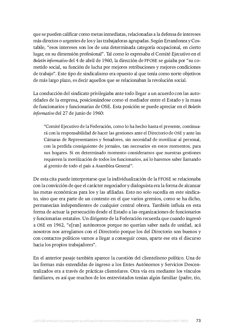 En esta colección se presentan distintas publicaciones periódicas (diarios, semanarios, boletines, revistas, etc.) así como otro tipo de materiales (afiches, volantes, adhesivos, etc.) publicados por la FFOSE o con su apoyo e iniciativa. La recuperación, digitalización y postprocesamiento se realizó en colaboración con miembros y ex miembros de la organización sindical. La selección del material la realizó Sitios de Memoria - Uruguay en base a la vinculación y relevancia de los contenidos con los que son de interés de este proyecto.