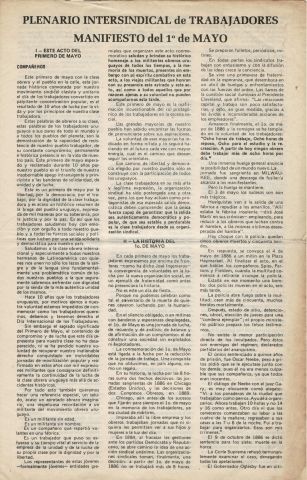 Día 1 Mes 5 Año 1983 Tipo de material Folleto Dimensión 8 pags. Colección Plenario Intersindical de Trabajadores - Convención Nacional de Trabajadores (PIT-CNT) 1ro de Mayo Origen Centro de Documentación del PIT-CNT Centro de Documentación del PIT-CNT Publicacion