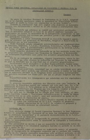 Congreso de Unificación Sindical : Informe sobre estatutos