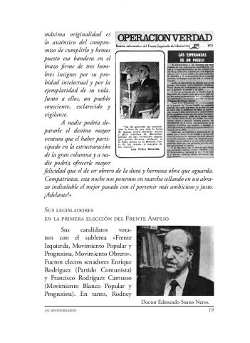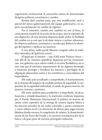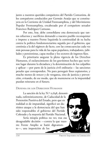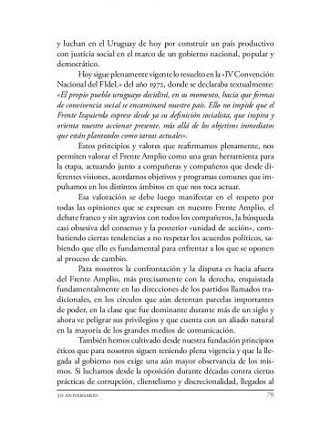 El texto destaca sus objetivos de promover una agenda antiimperialista, implementar reformas estructurales como la reforma agraria y defender los derechos de los trabajadores. Durante las décadas de los 60 y 70, el FIdeL desempeñó un papel importante en la oposición al autoritarismo y en la articulación de la izquierda, contribuyendo a la formación del Frente Amplio en 1971.
