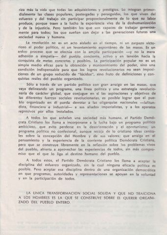 Este documento, conteniendo el Programa de principios del Partido Demócrata Cristiano fue aprobado por unanimidad de su Convención Nacional, realizada el 19 de diciembre de 1970.