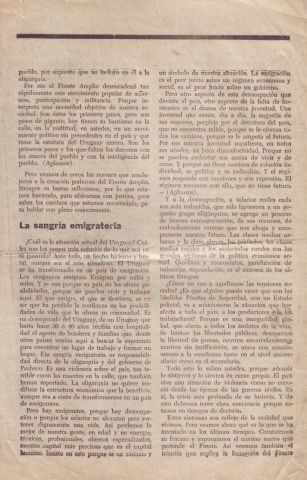 Denuncia la represión de trabajadores y estudiantes, la emigración masiva de uruguayos a vivir en el exterior, el desempleo, el empobrecimiento general, la extranjerización de la economía y la pérdida de libertades. Acusa al gobierno y a la oligarquía de mantener el poder a costa del pueblo.
