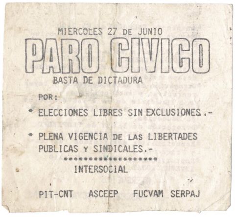 Mes 6 Año 1984 Tipo de material Volante Dimensión 2 pags. Colección Federación de Estudiantes Universitarios del Uruguay (FEUU) Federación Uruguaya de Cooperativas de Vivienda por Ayuda Mutua (FUCVAM) Plenario Intersindical de Trabajadores - Convención Nacional de Trabajadores (PIT-CNT) Servicio Paz y Justicia (Serpaj) Origen Colección Gabriela Luna Colección Gabriela Luna Publicacion