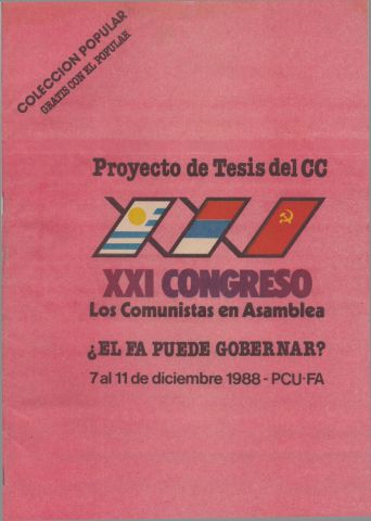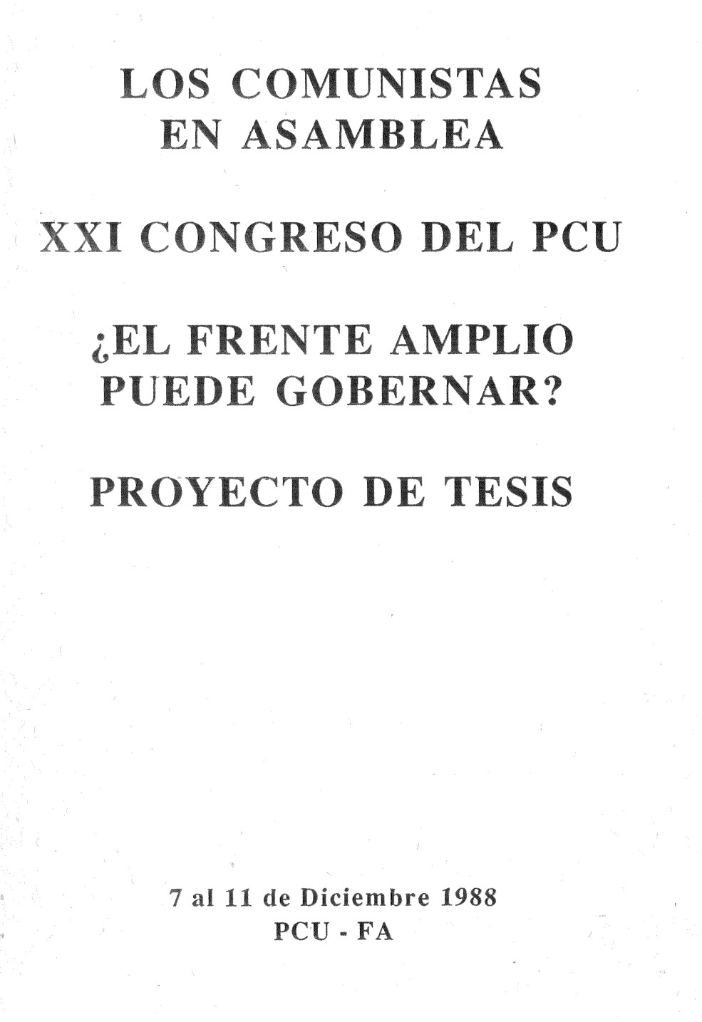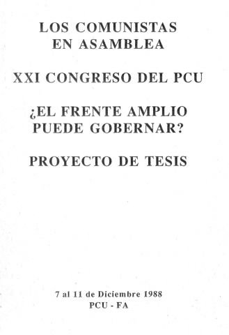 Mes 12 Año 1988 Tipo de material Librillo Dimensión 62 pags. Colección Partido Comunista de Uruguay (PCU) Origen Colección Fernando de León Colección Fernando de León Publicacion