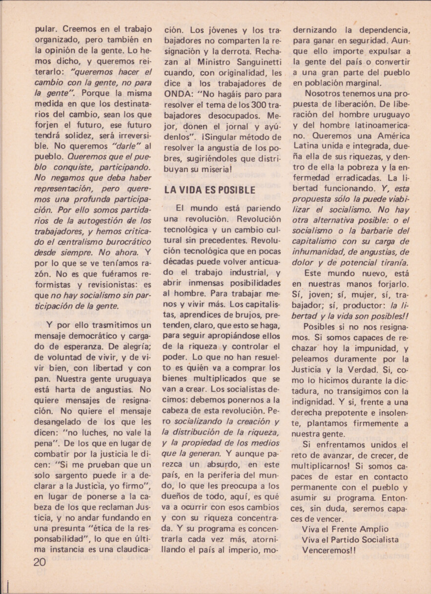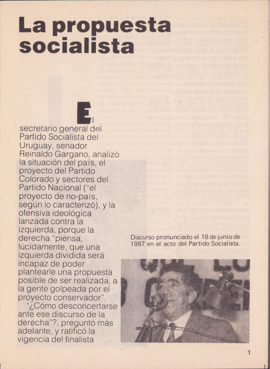 Día 18 Mes 6 Año 1987 Tipo de material Librillo Dimensión 24 pags. Colección Partido Socialista de Uruguay (PSU) Origen Colección Fernando de León Colección Fernando de León Publicacion