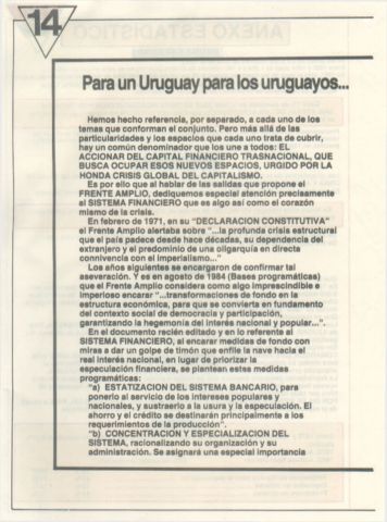 Año 1988 Tipo de material Folleto Dimensión 16 pags. Colección Frente Amplio (FA) Origen Colección Fernando de León Colección Fernando de León Publicacion