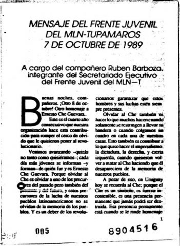 Día 7 Mes 10 Año 1989 Tipo de material Librillo Dimensión 18 pags. Colección Movimiento de Liberación Nacional - Tupamaros (MLN-T) Origen Archivo Berrutti Archivo Berrutti Publicacion