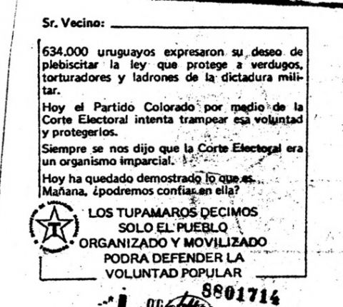 Año 1988 Tipo de material Volante Dimensión 2 pags. Colección Movimiento de Liberación Nacional - Tupamaros (MLN-T) Origen Archivo Berrutti Archivo Berrutti Publicacion