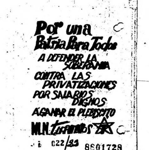 Día 1 Mes 5 Año 1988 Tipo de material Volante Dimensión 2 pags. Colección Movimiento de Liberación Nacional - Tupamaros (MLN-T) Origen Archivo Berrutti Archivo Berrutti Publicacion