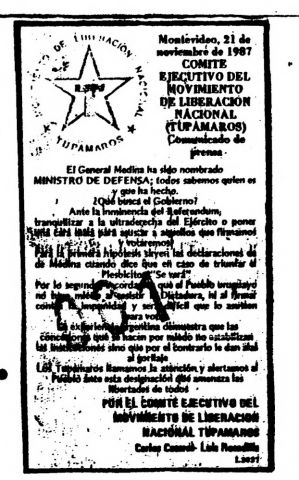 Día 21 Mes 11 Año 1987 Tipo de material Documento Colección Movimiento de Liberación Nacional - Tupamaros (MLN-T) Origen Archivo Berrutti Archivo Berrutti Publicación