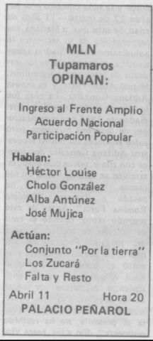 Día 11 Mes 4 Año 1986 Tipo de material Volante Colección Movimiento de Liberación Nacional - Tupamaros (MLN-T) Origen Colección Fernando de León Colección Fernando de León Publicacion
