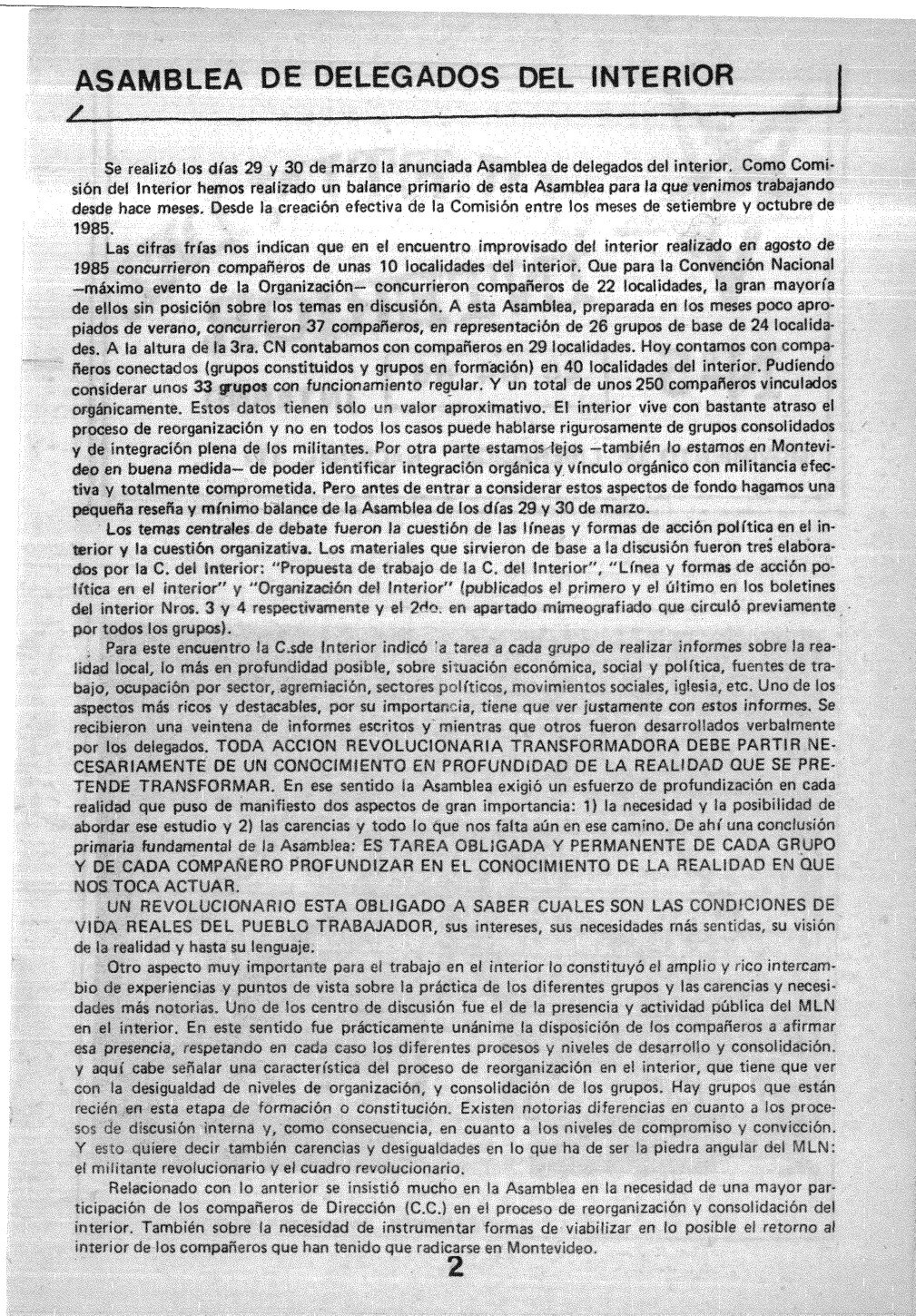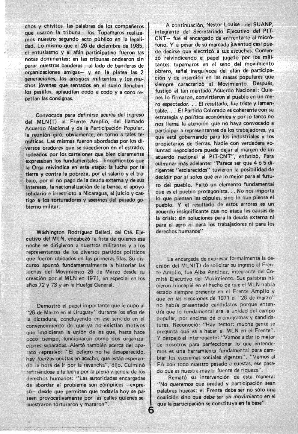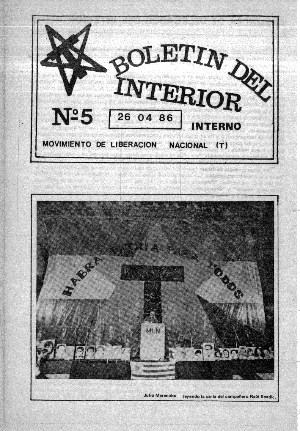 Día 26 Mes 4 Año 1986 Tipo de material Folleto Colección Movimiento de Liberación Nacional - Tupamaros (MLN-T) Origen Colección Daniel Aljanati Colección privada Publicacion
