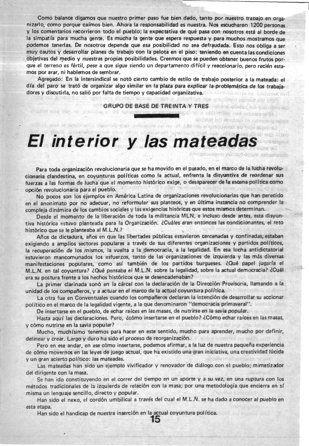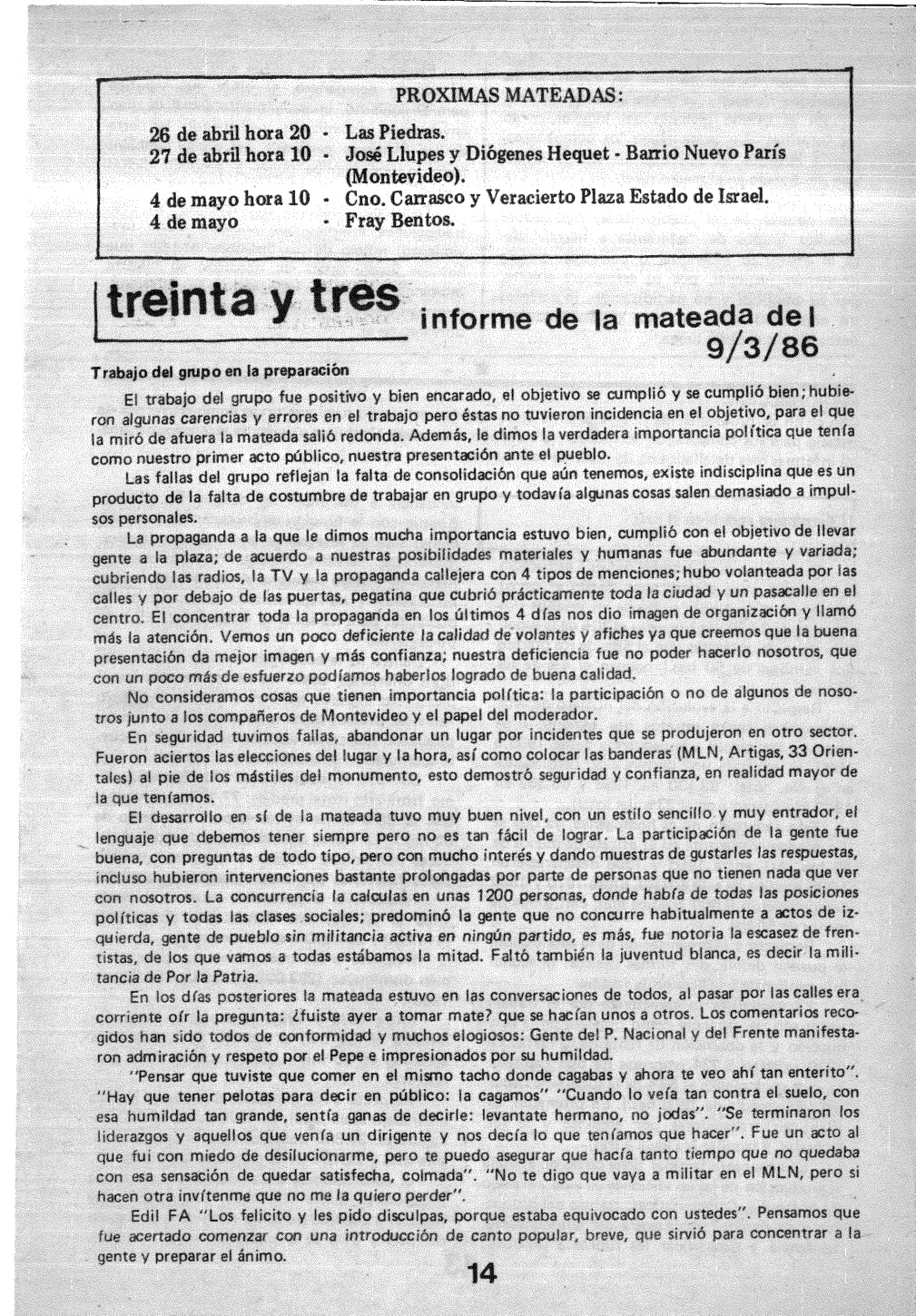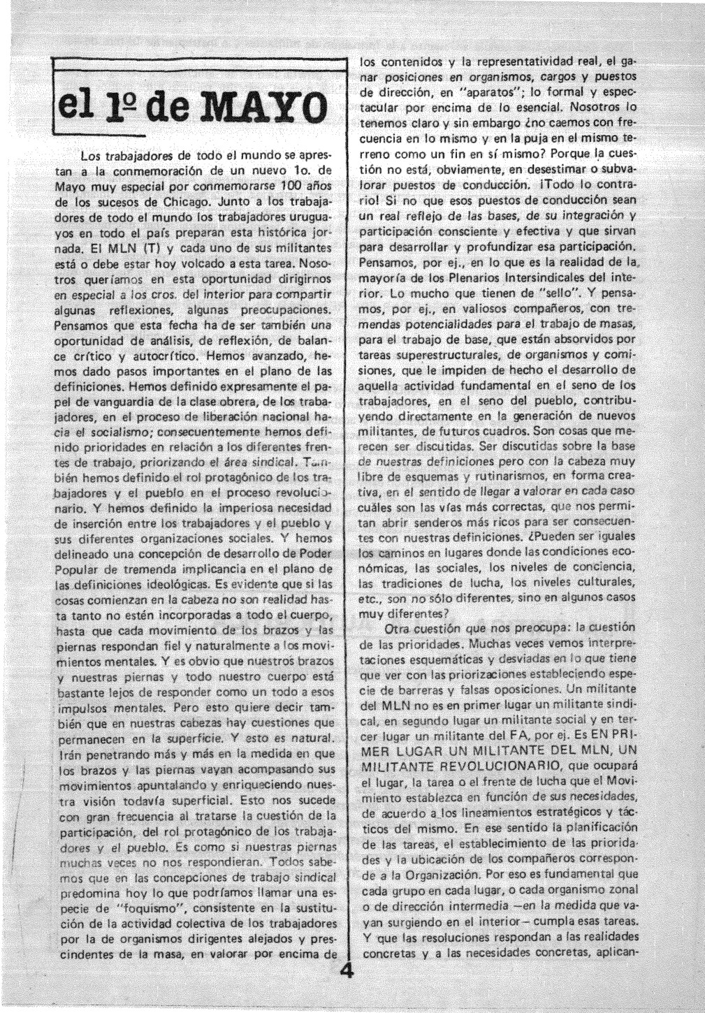 Día 26 Mes 4 Año 1986 Tipo de material Folleto Colección Movimiento de Liberación Nacional - Tupamaros (MLN-T) Origen Colección Daniel Aljanati Colección privada Publicacion