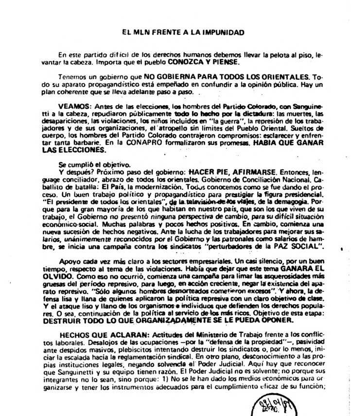 Mes 12 Año 1986 Tipo de material Volante Colección Movimiento de Liberación Nacional - Tupamaros (MLN-T) Origen Archivo Berrutti Archivo Berrutti Publicacion