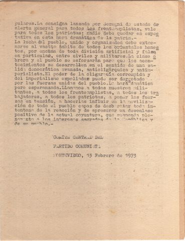 Mes 2 Año 1973 Tipo de material Folleto Dimensión 8 pags. Colección Partido Comunista de Uruguay (PCU) Origen Colección Leandro Giuliani Colección Leandro Giuliani Publicacion