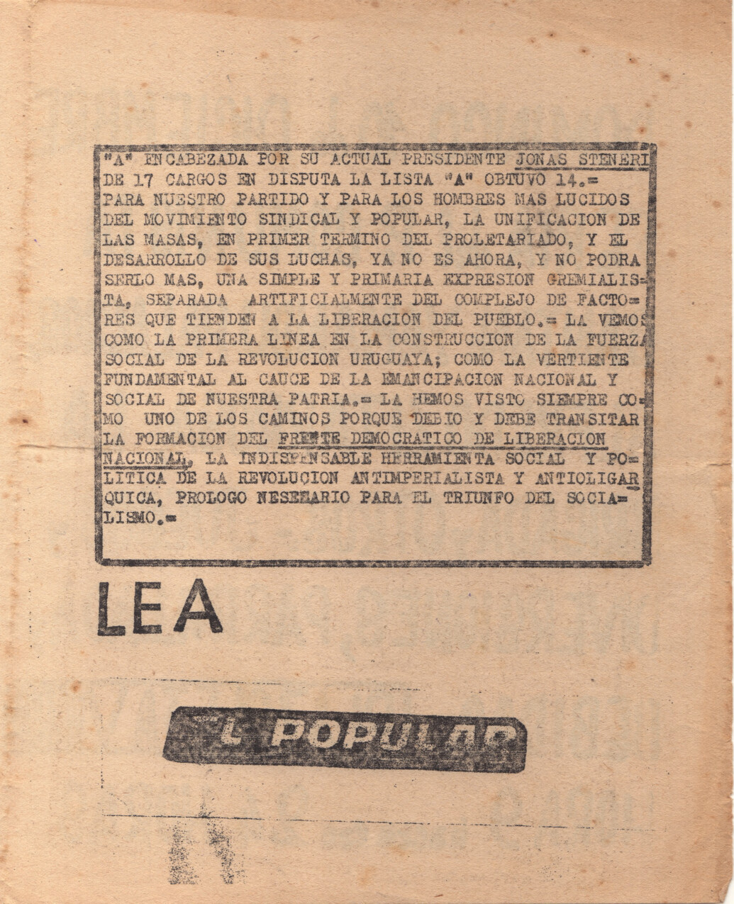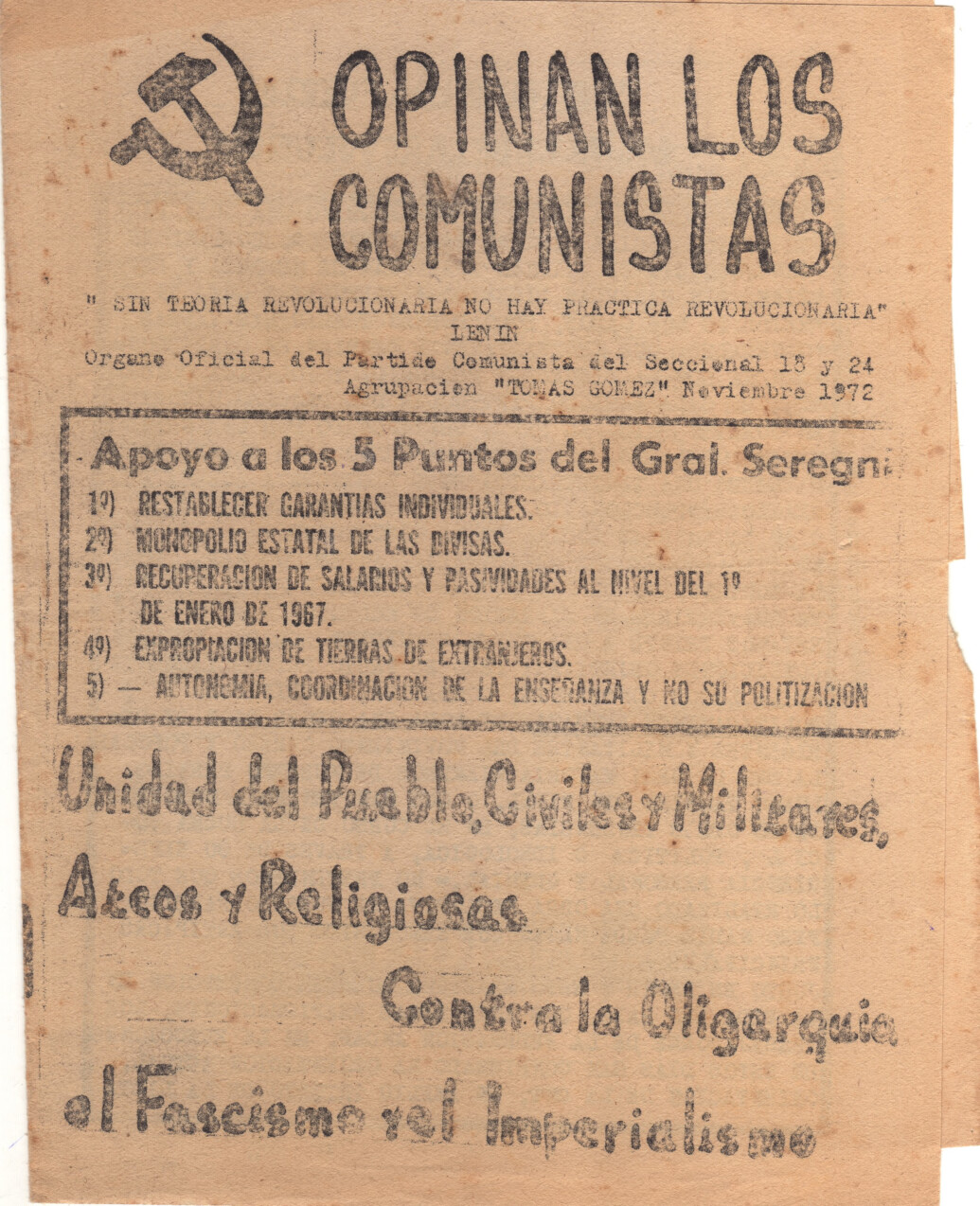 Mes 11 Año 1972 Tipo de material Folleto Dimensión 4 pags. Colección Partido Comunista de Uruguay (PCU) Origen Colección Leandro Giuliani Colección Leandro Giuliani Publicacion