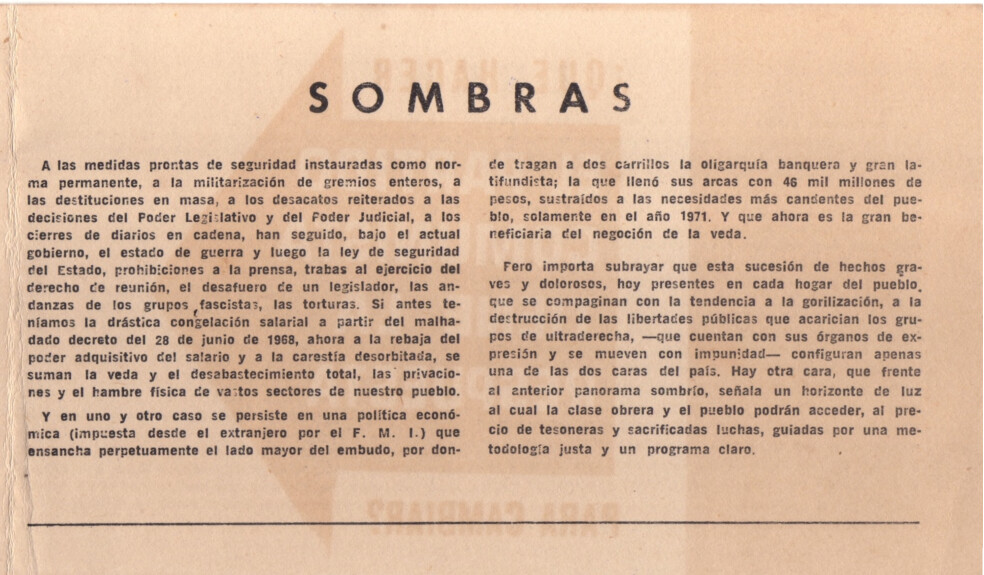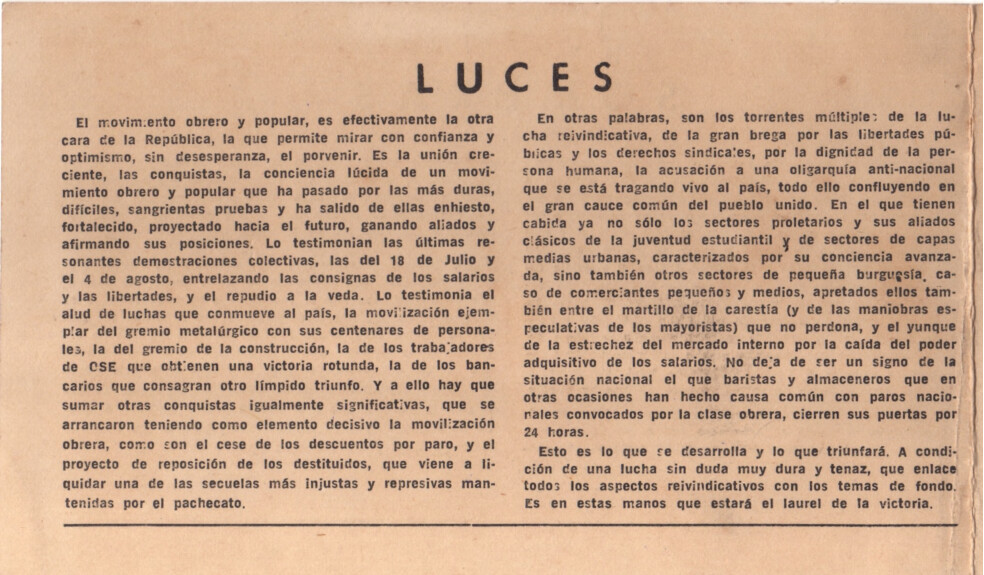 Día 22 Mes 8 Año 1972 Tipo de material Tarjeta Dimensión 4 pags. Colección Partido Comunista de Uruguay (PCU) Origen Colección Leandro Giuliani Colección Leandro Giuliani Publicacion