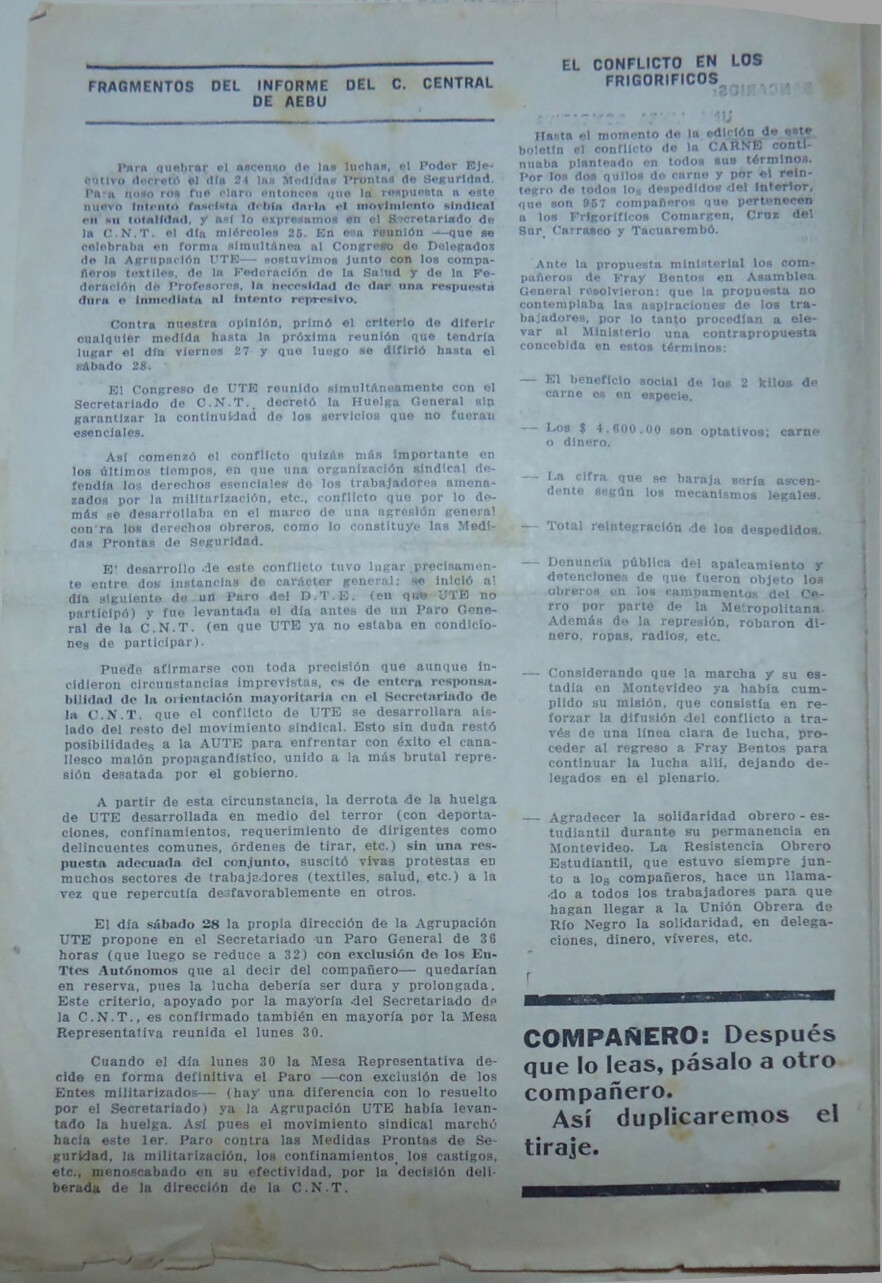 Mes 7 Año 1969 Tipo de material Folleto Dimensión 4 pags. Colección Resistencia Obrero Estudiantil (ROE) Origen Colección Fernando de León Colección Fernando de León Publicacion