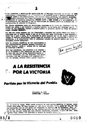 Mes 12 Año 1977 Menciona a Gatti Antuña, Gerardo Francisco Duarte Luján, León Gualberto Tipo de material Folleto Dimensión 3 pags. Colección Partido por la Victoria del Pueblo (PVP) Origen Archivo Berrutti Archivo Berrutti Publicacion