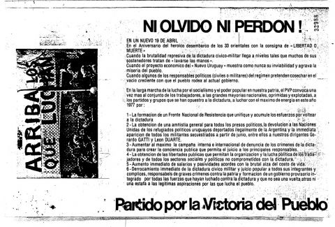 Mes 4 Año 1977 Menciona a Juárez Beliz, Telba Petronila Tipo de material Folleto Colección Partido por la Victoria del Pueblo (PVP) Origen Archivo Berrutti Archivo Berrutti Publicacion