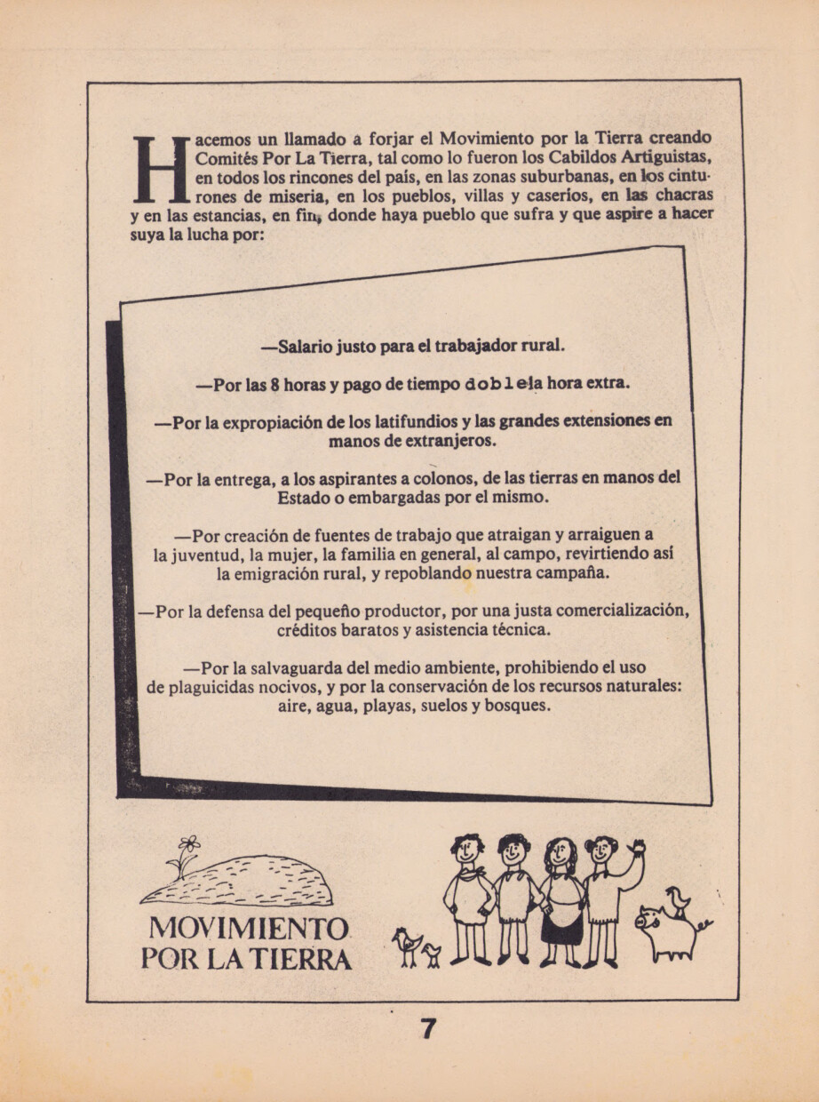 El folleto del Movimiento por la Tierra, conteniendo una serie de definiciones y propuestas concretas, no está fechado. Por el formato y contenido es probable que se haya publicado en 1987 o 1988.