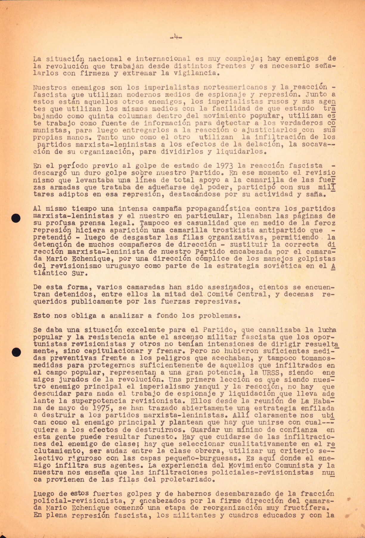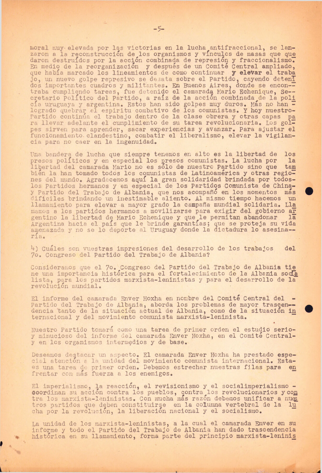 La publicación del PCR uruguayo no está fechada aunque refiere a la delegación del PCR al 7º Congreso del Partido del Trabajo de Albania (PTA), el cual lugar en noviembre de 1976. La mención en la última página de este documento de 3 asesinados por motivos políticos brasileños de diciembre de ese año, ubican la fecha probable de edición como ese mes.