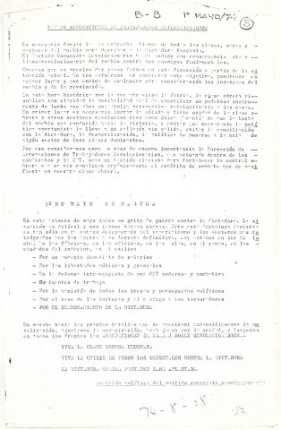 Día 1 Mes 5 Año 1974 Tipo de material Documento Dimensión 3 pags. Colección Partido Comunista Revolucionario del Uruguay (PCR) Origen Colección Lewis Rostan Colección Lewis Rostan Publicacion