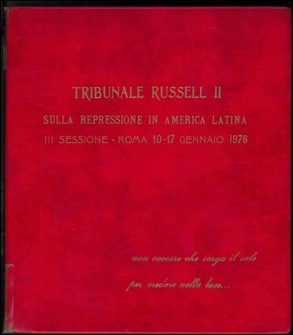 Álbum compuesto por46 fotografías tomadas durante la tercera sesión pública internacional del Tribunal Russell II, realizada en la ciudad de Roma entre el 10 y el 17 de enero de 1976. Este tribunal de opinión, impulsado por el jurista italiano Lelio Basso, fue convocado para investigar y denunciar las violaciones a los derechos humanos perpetradas por las dictaduras de América Latina.