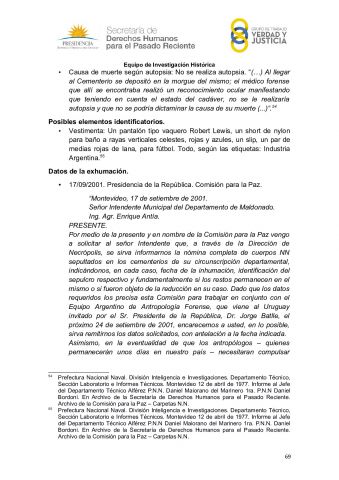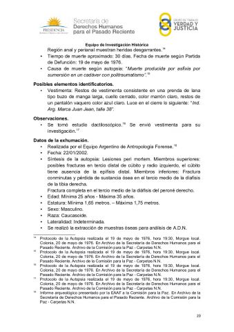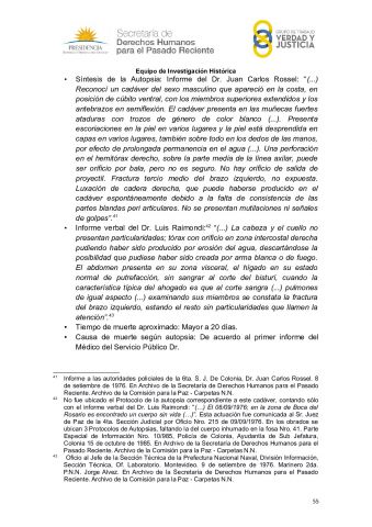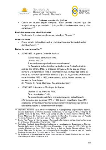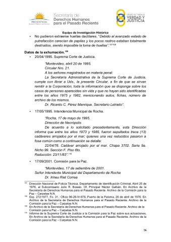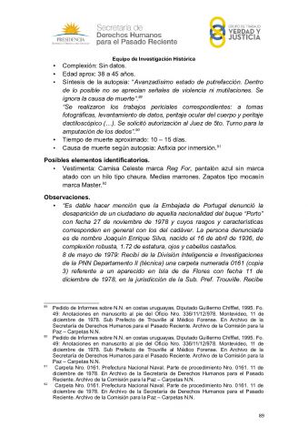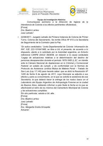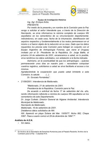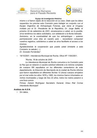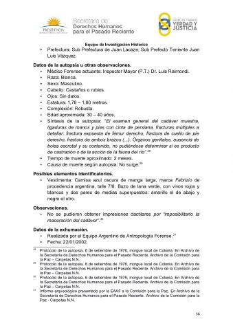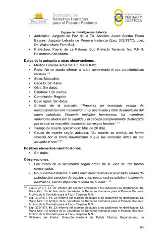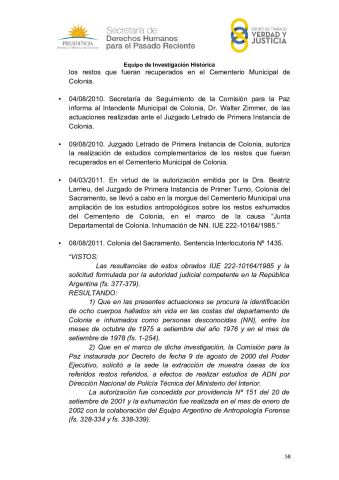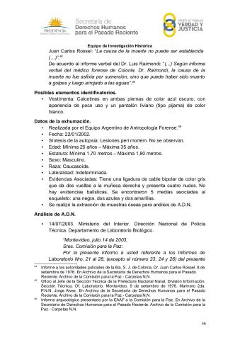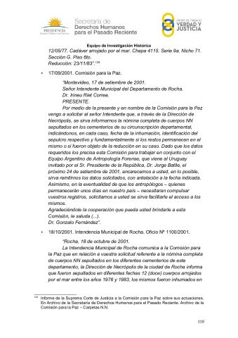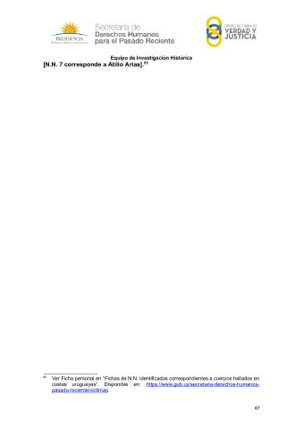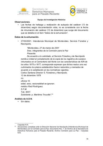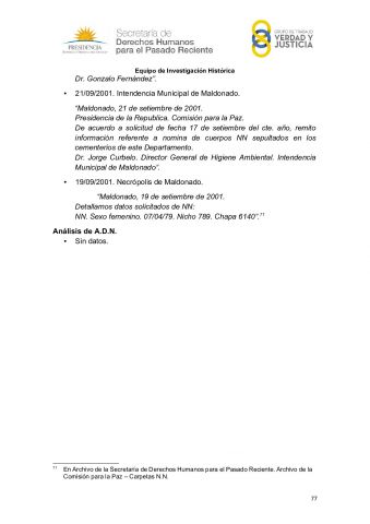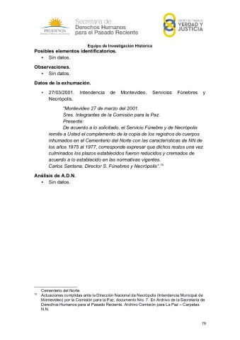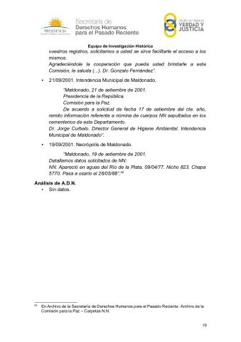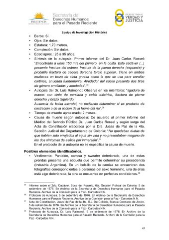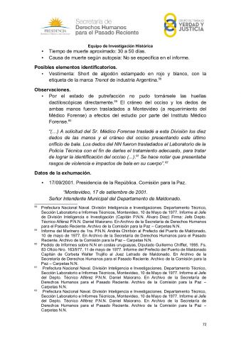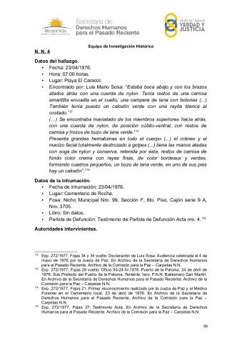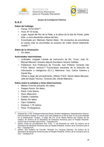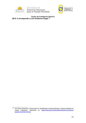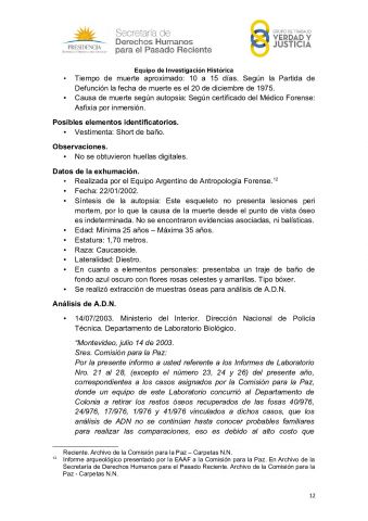Este documento fue realizado por el equipo de investigación histórica de la Secretaría para el Pasado Reciente de Presidencia de la República y actualizado en 2014. En el se sistematiza los los hallazgos de cuerpos de personas, aparecidas en las costas de Rocha, Colonia, Maldonado y Montevideo entre los años 1975 - 1979 e inhumados como N. N. en los cementerios de esos departamentos. De un total de 31 cuerpos se han identificado a la fecha 10 personas.