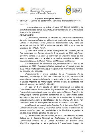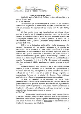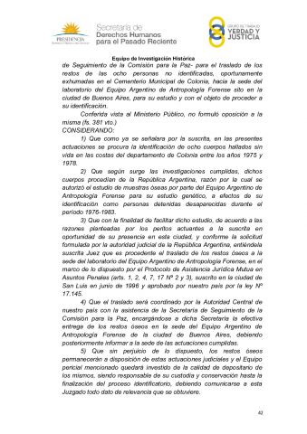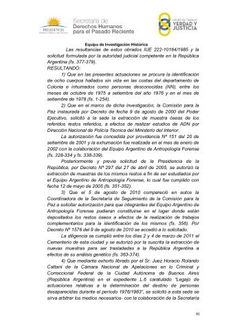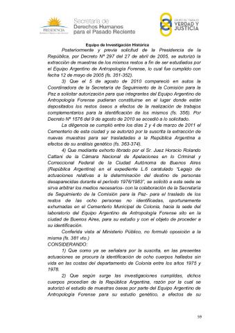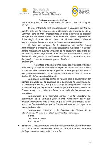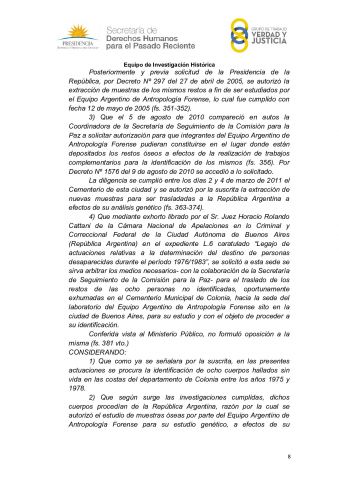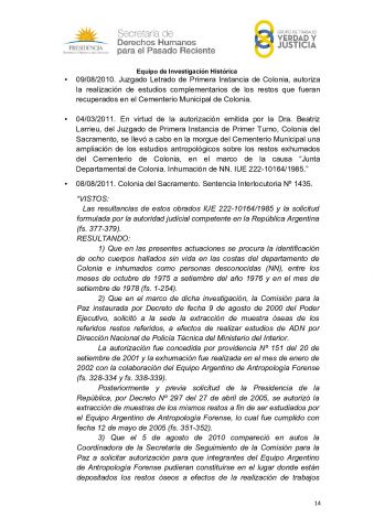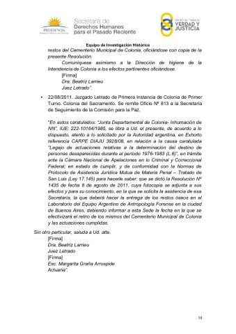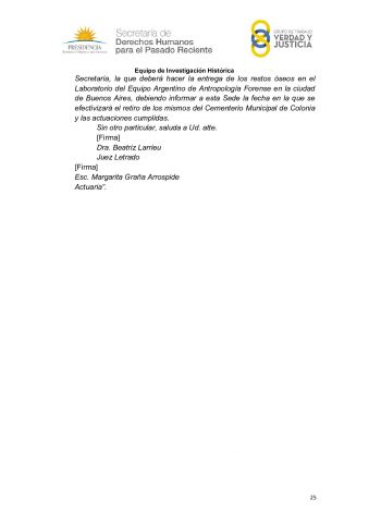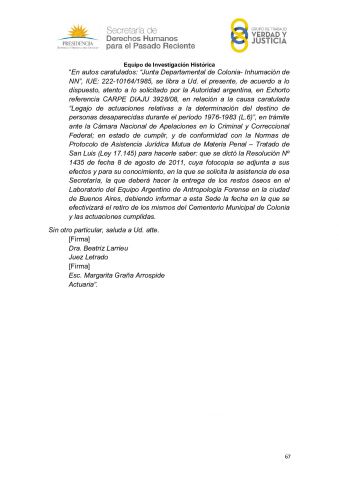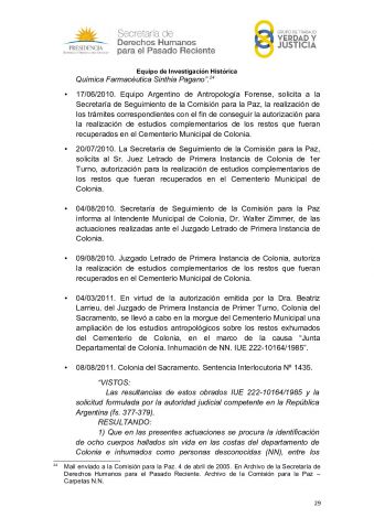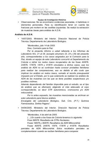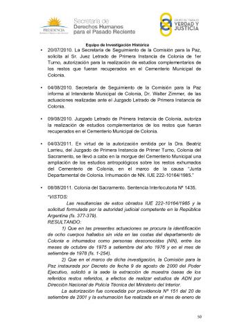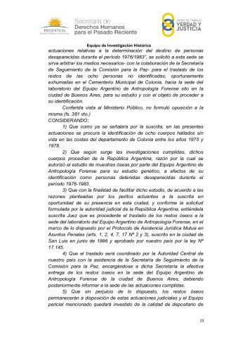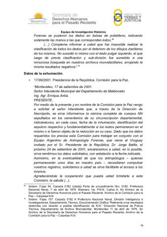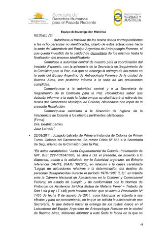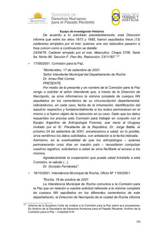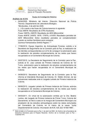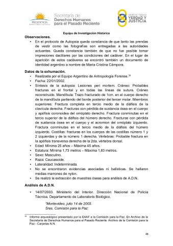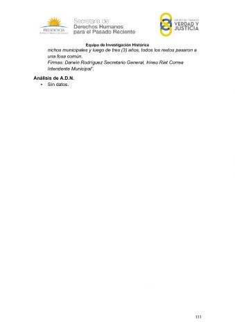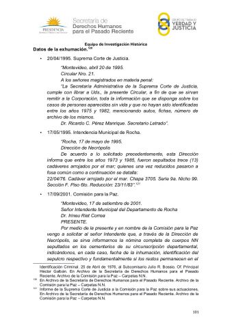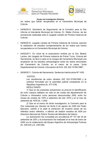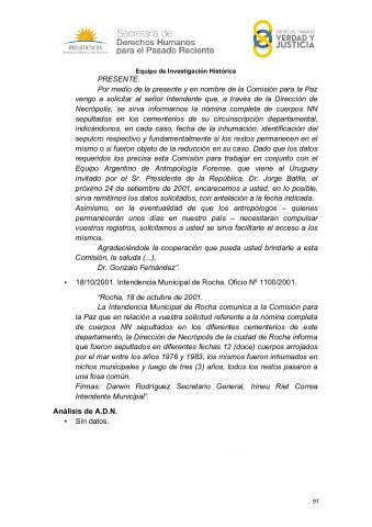 Este documento fue realizado por el equipo de investigación histórica de la Secretaría para el Pasado Reciente de Presidencia de la República y actualizado en 2014. En el se sistematiza los los hallazgos de cuerpos de personas, aparecidas en las costas de Rocha, Colonia, Maldonado y Montevideo entre los años 1975 - 1979 e inhumados como N. N. en los cementerios de esos departamentos. De un total de 31 cuerpos se han identificado a la fecha 10 personas.