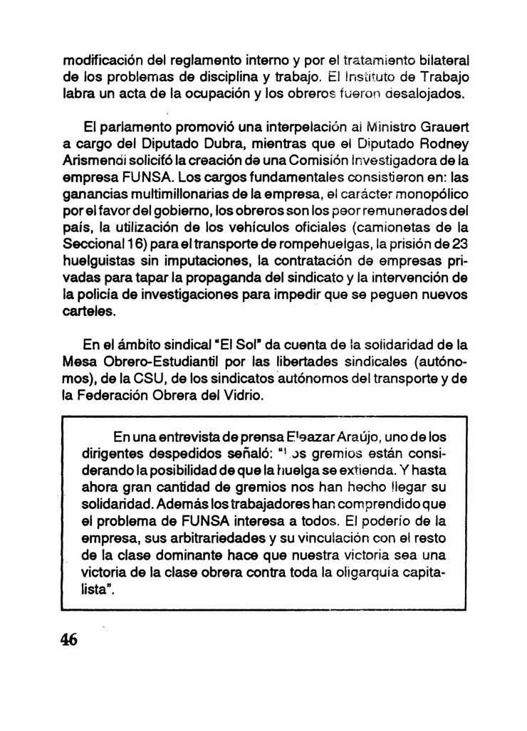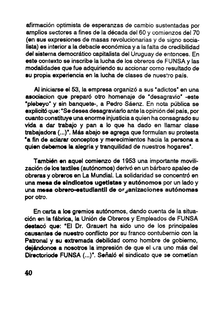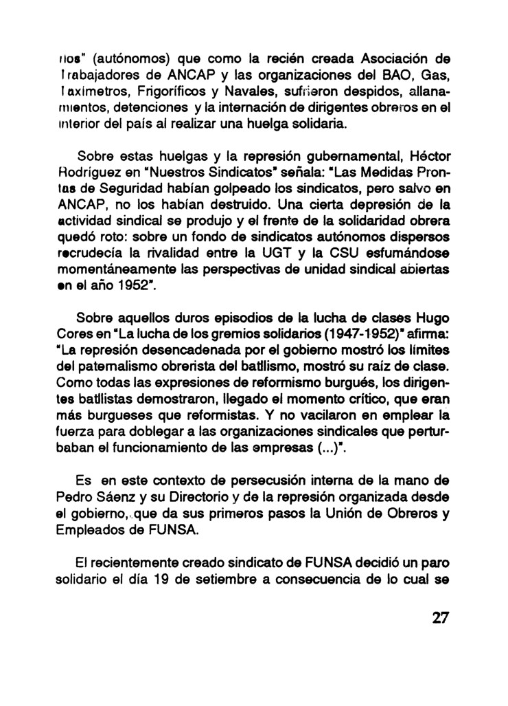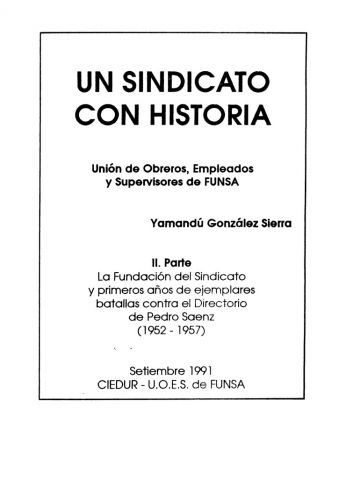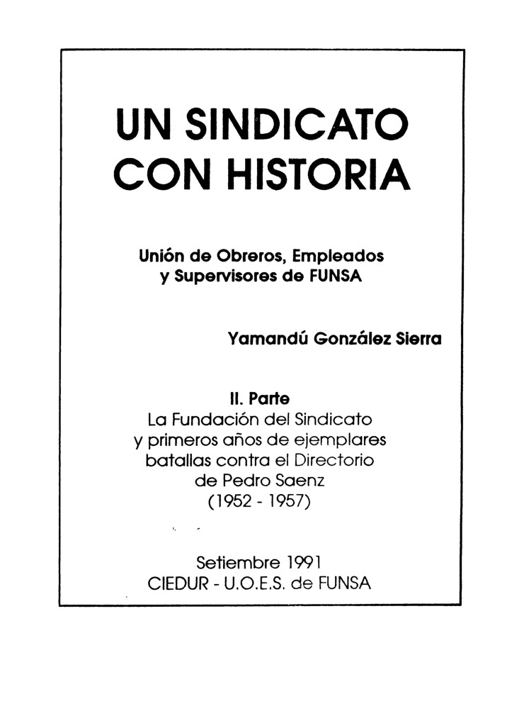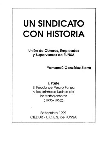 Autoria Yamandú González Sierra Mes 9 Año 1991 Tipo de material Librillo Dimensión 94 pags. Colección Sindicato de FUNSA (UOESF) Origen Colección Fernando de León Colección Fernando de León Publicacion