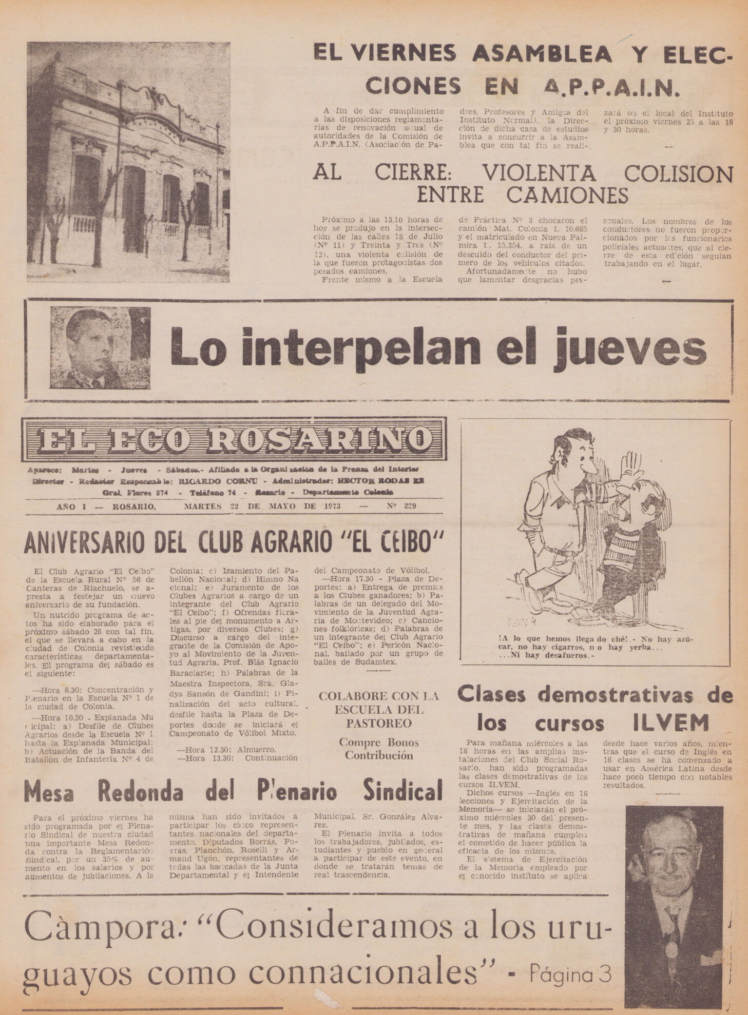En marzo de 2023, el periodista Luis Udaquiola puso a disposición una serie de ejemplares de prensa, en particular "El Eco" de la ciudad de Rosario (Colonia), para ser digitalizados y disponibilizados a través de sitiosdememoria.uy