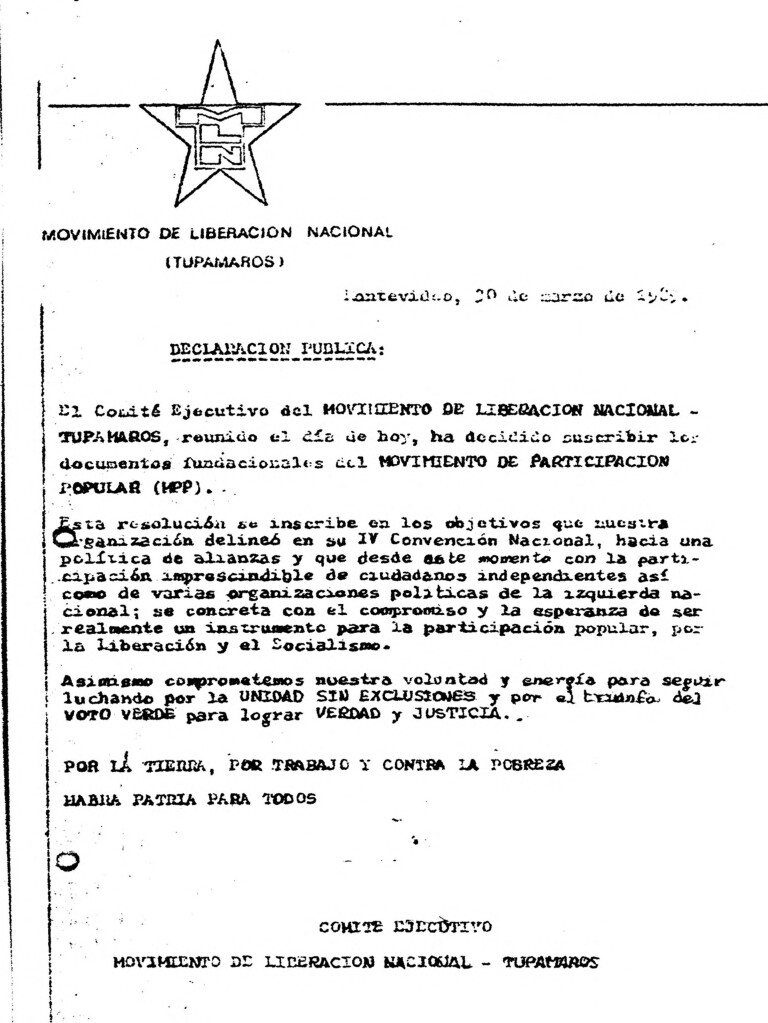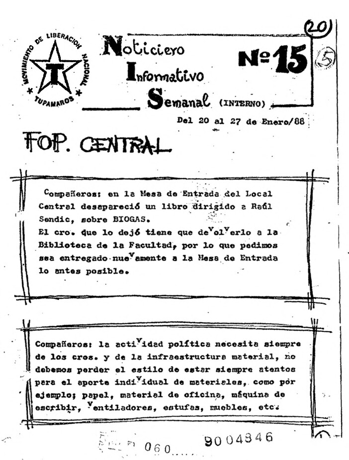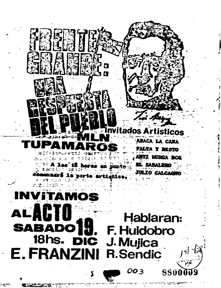 Los materiales de esta lista, generados por el movimiento popular para su difusión pública, han sido extraídos de una parte del Archivo Berrutti, en colaboración con Madres y Familiares de Uruguayos detenidos desaparecidos.