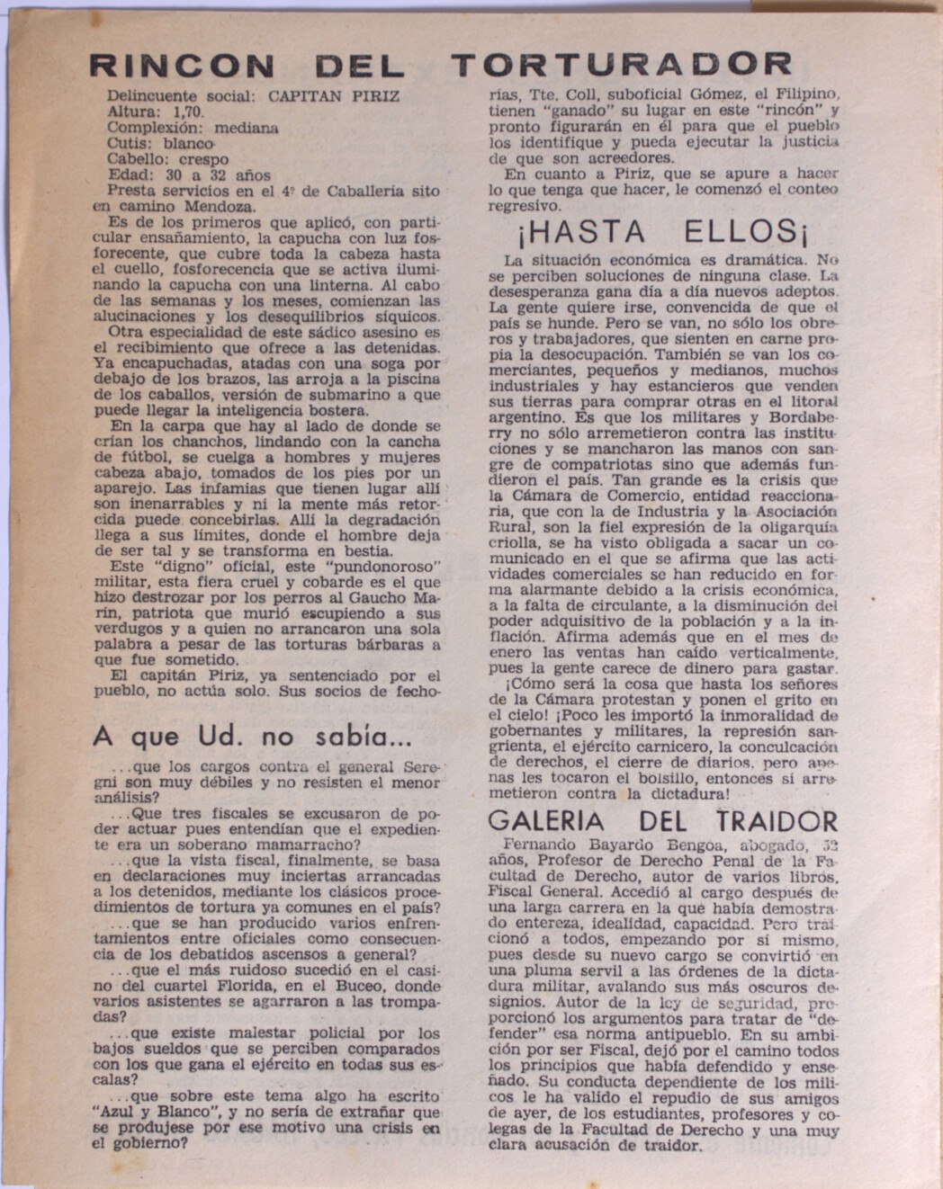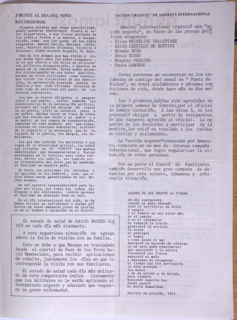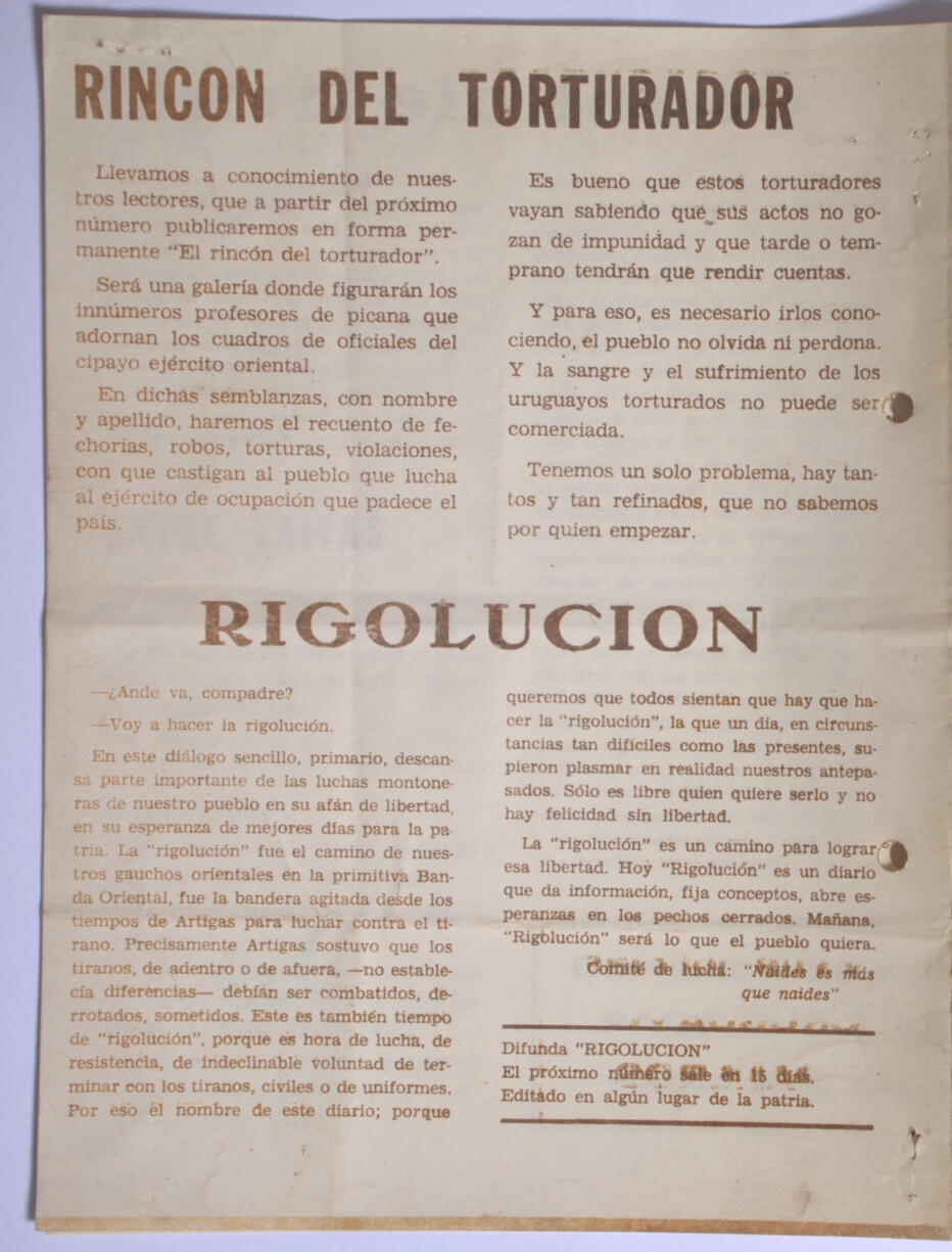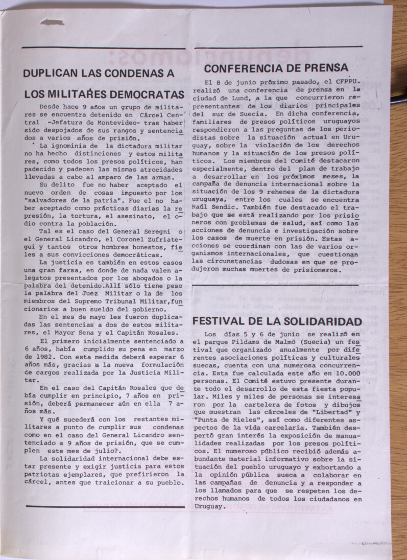 En la línea de trabajo 'Memorias del movimiento popular' y en colaboración con Madres y Familiares de uruguayos detenidos desaparecidos, se están analizando las digitalizaciones del Archivo del FUSNA, extrayendose los materiales incautados a las organizaciones populares por las fuerzas represivas para devolverlos a la sociedad, mediante su disponibilización en este proyecto.