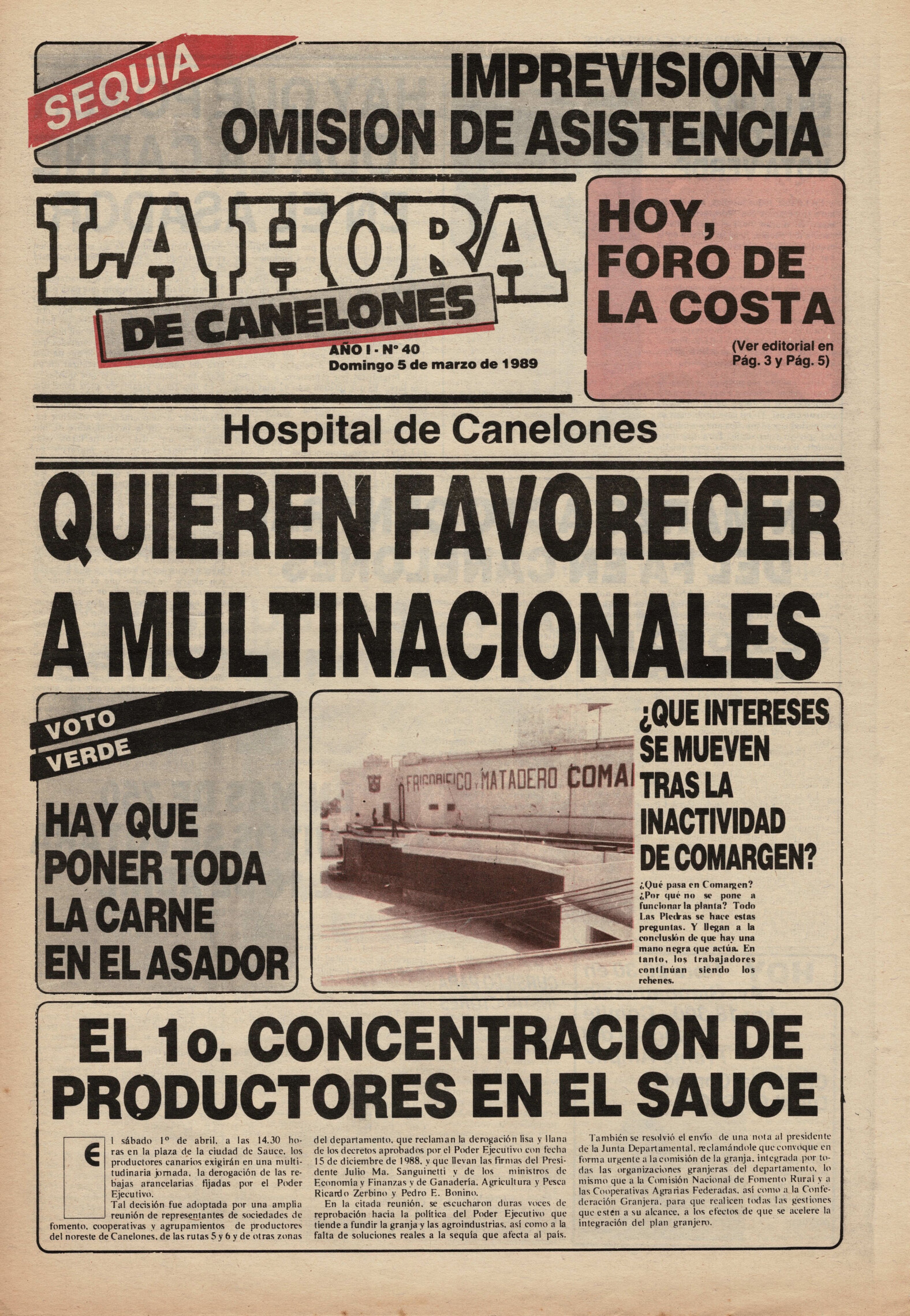 Medio de prensa La Hora de Canelones Tipo Posdictadura Día de publicación 5 Mes de publicación 3 Año de publicación 1989 Origen Archivo del PCU Archivo del Partido Comunista del Uruguay Publicacion completa