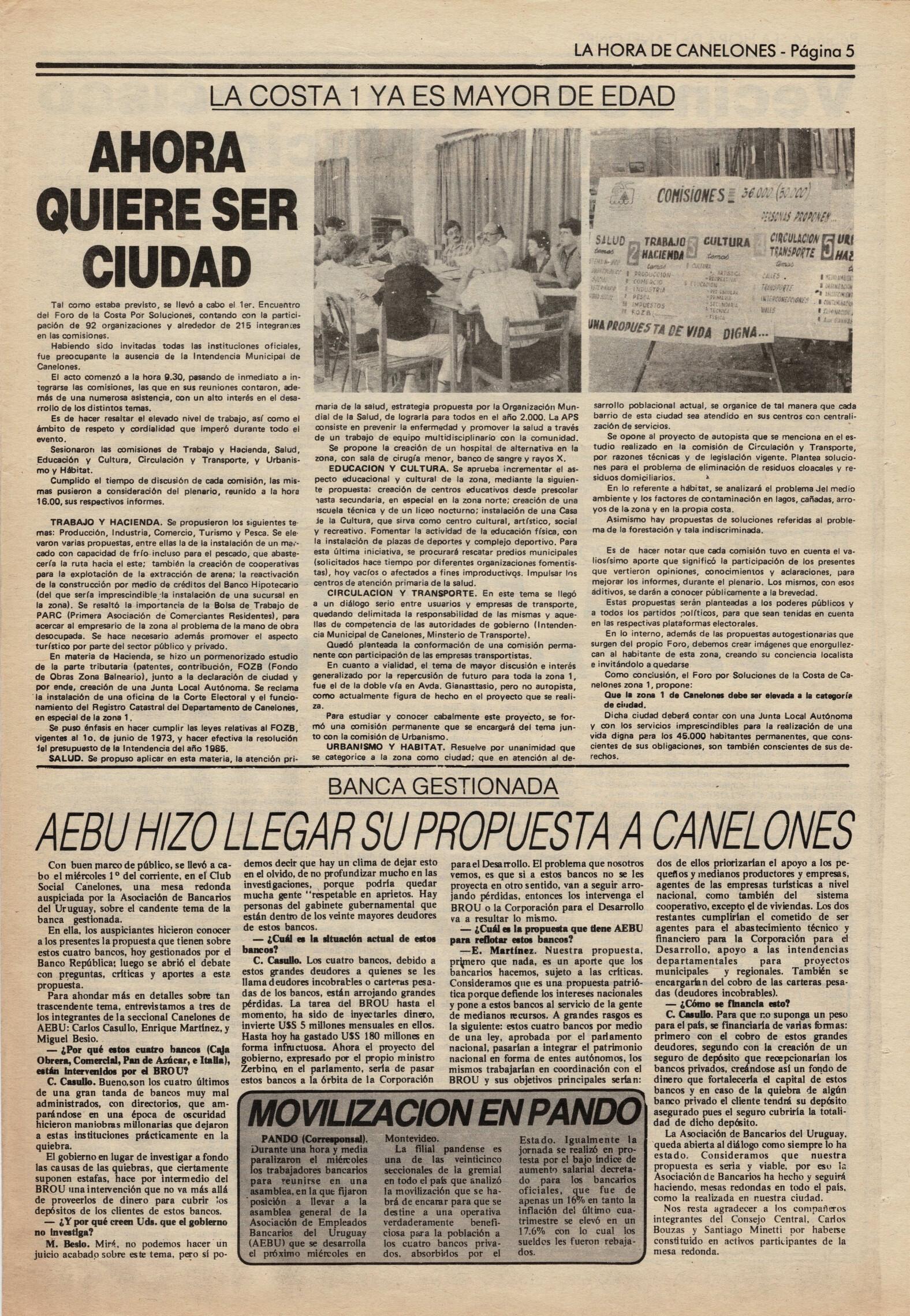Medio de prensa La Hora de Canelones Tipo Posdictadura Día de publicación 12 Mes de publicación 3 Año de publicación 1989 Origen Archivo del PCU Archivo del Partido Comunista del Uruguay Publicacion completa
