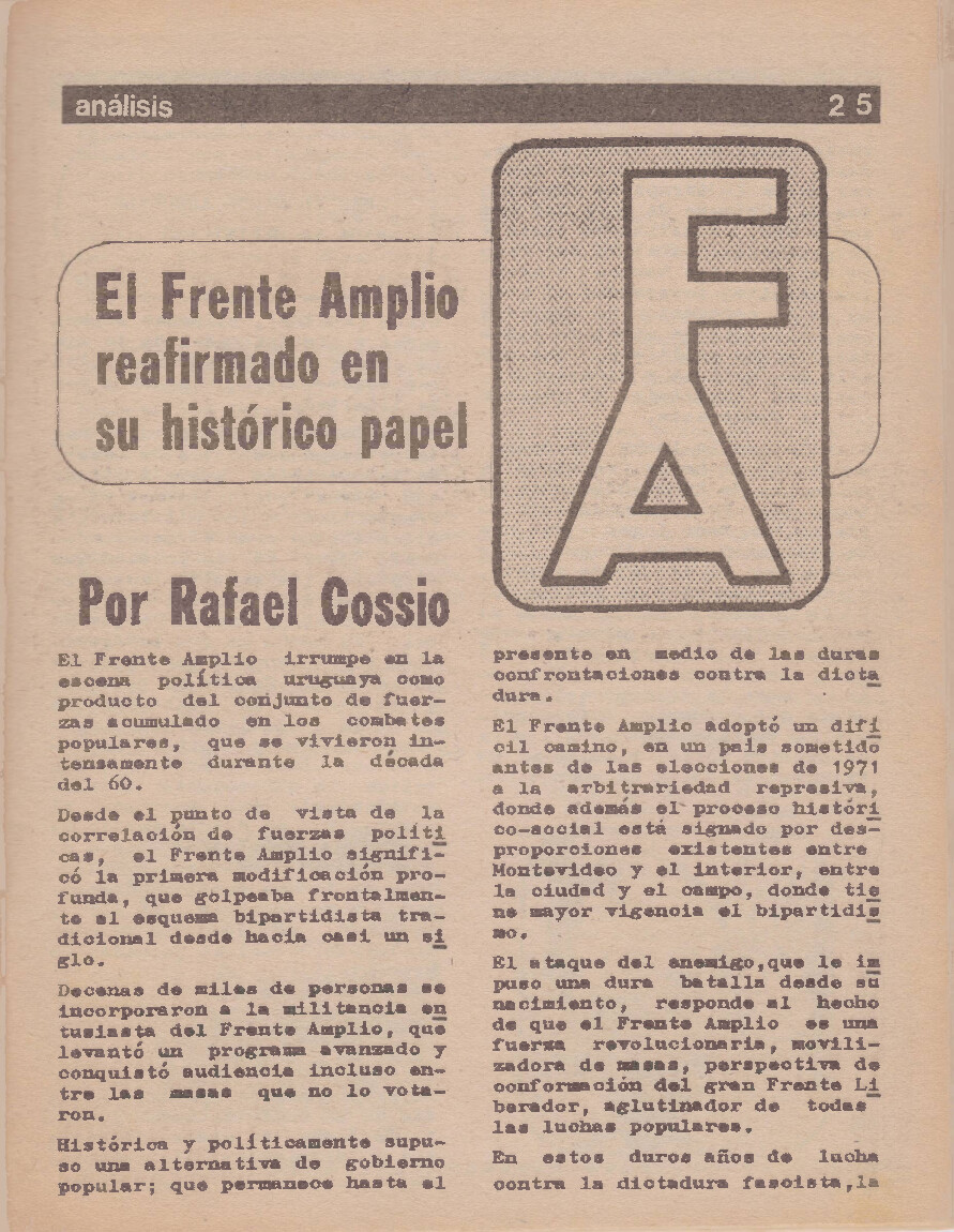 Medio de prensa Análisis Tipo Del exilio Mes de publicación 12 Año de publicación 1983 Origen Archivo del PCU Archivo del Partido Comunista del Uruguay Publicacion completa