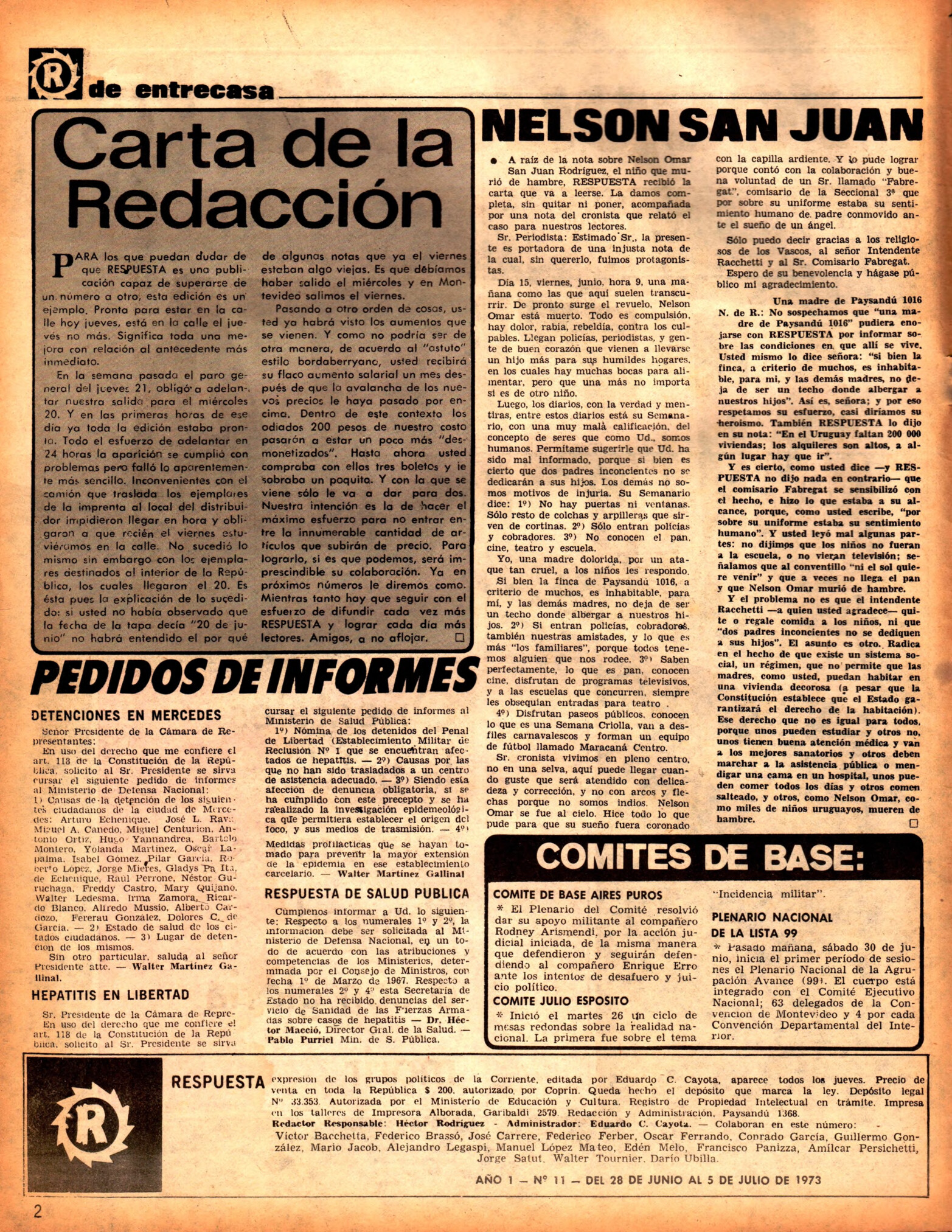 Medio de prensa Respuesta / Carta de respuesta Tipo Crítica Día de publicación 28 Mes de publicación 6 Año de publicación 1973 Origen Anáforas Proyecto Anáforas Publicacion completa