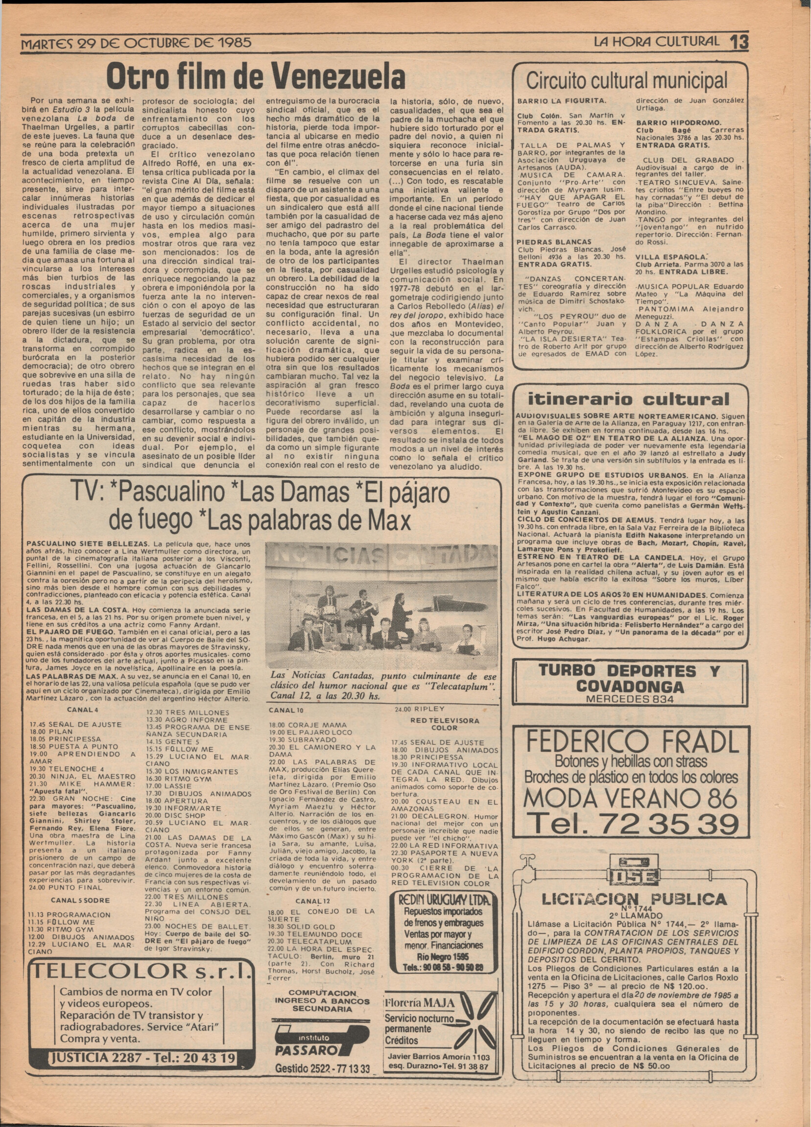 Medio de prensa La Hora Tipo Posdictadura Día de publicación 29 Mes de publicación 10 Año de publicación 1985 Origen Archivo del PCU Archivo del Partido Comunista del Uruguay Publicacion completa