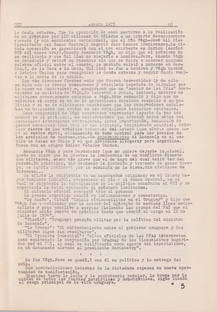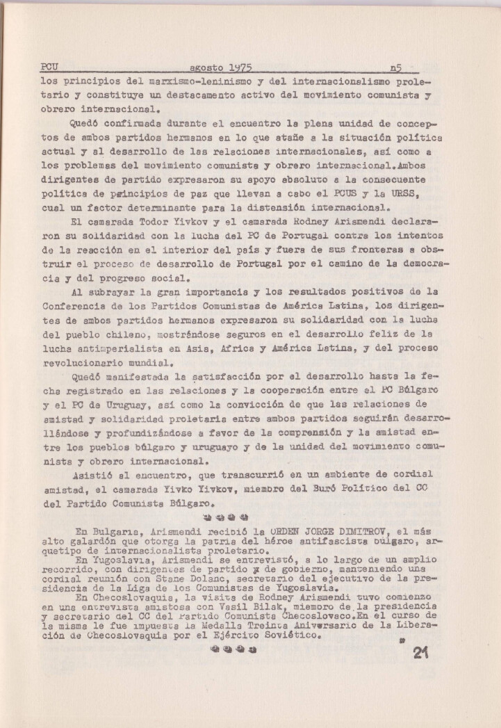 Medio de prensa Boletín Exterior del PCU Tipo Del exilio Mes de publicación 8 Año de publicación 1975 Origen Archivo del PCU Archivo del Partido Comunista del Uruguay Publicacion completa