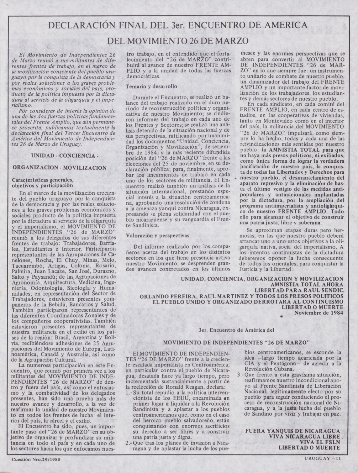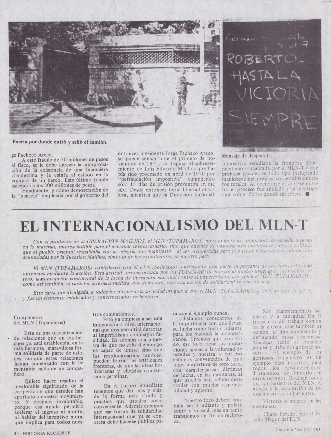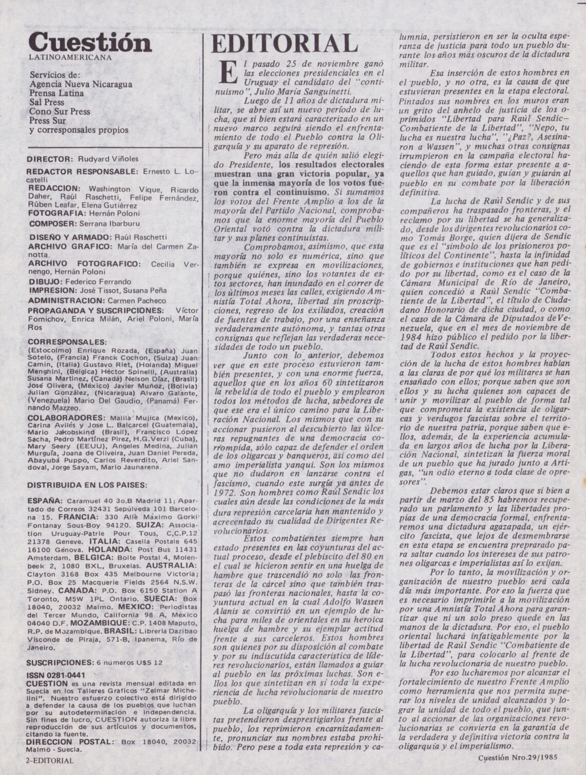 Medio de prensa Cuestión Tipo Del exilio Año de publicación 1985 Origen Archivo del MLN-T Archivo del MLN-T Publicacion completa