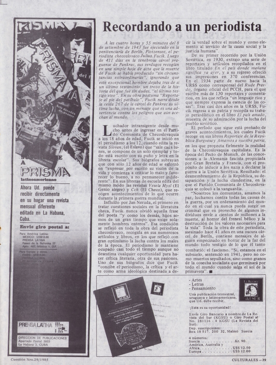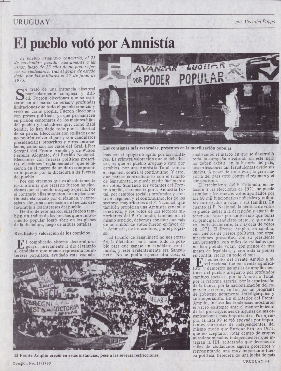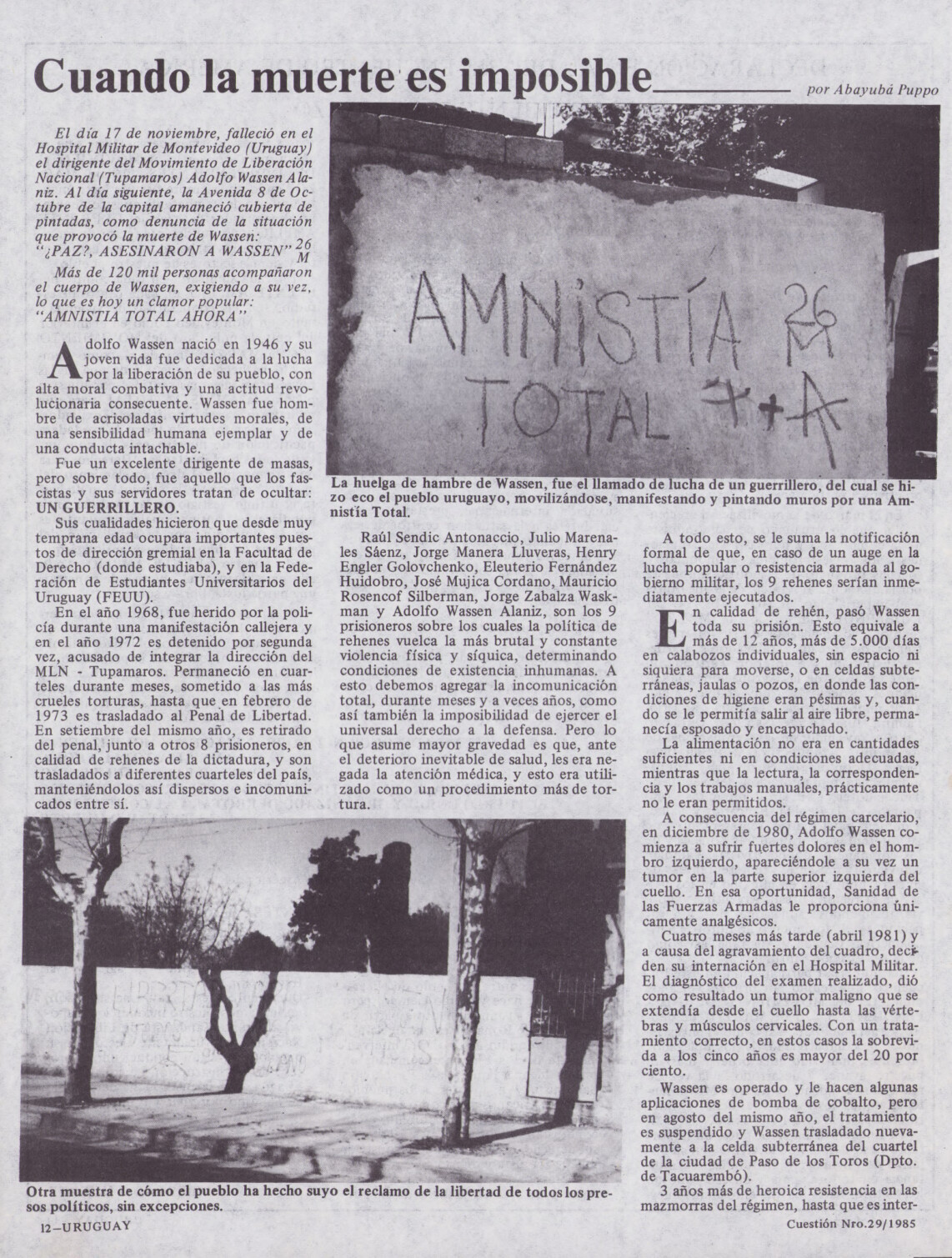 Medio de prensa Cuestión Tipo Del exilio Año de publicación 1985 Origen Archivo del MLN-T Archivo del MLN-T Publicacion completa