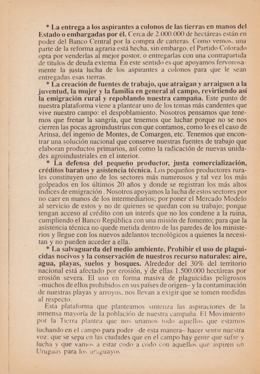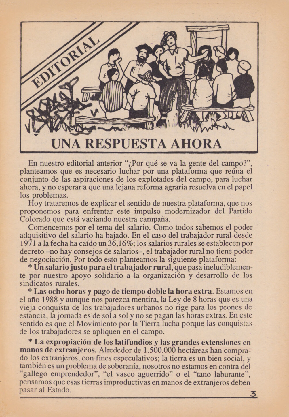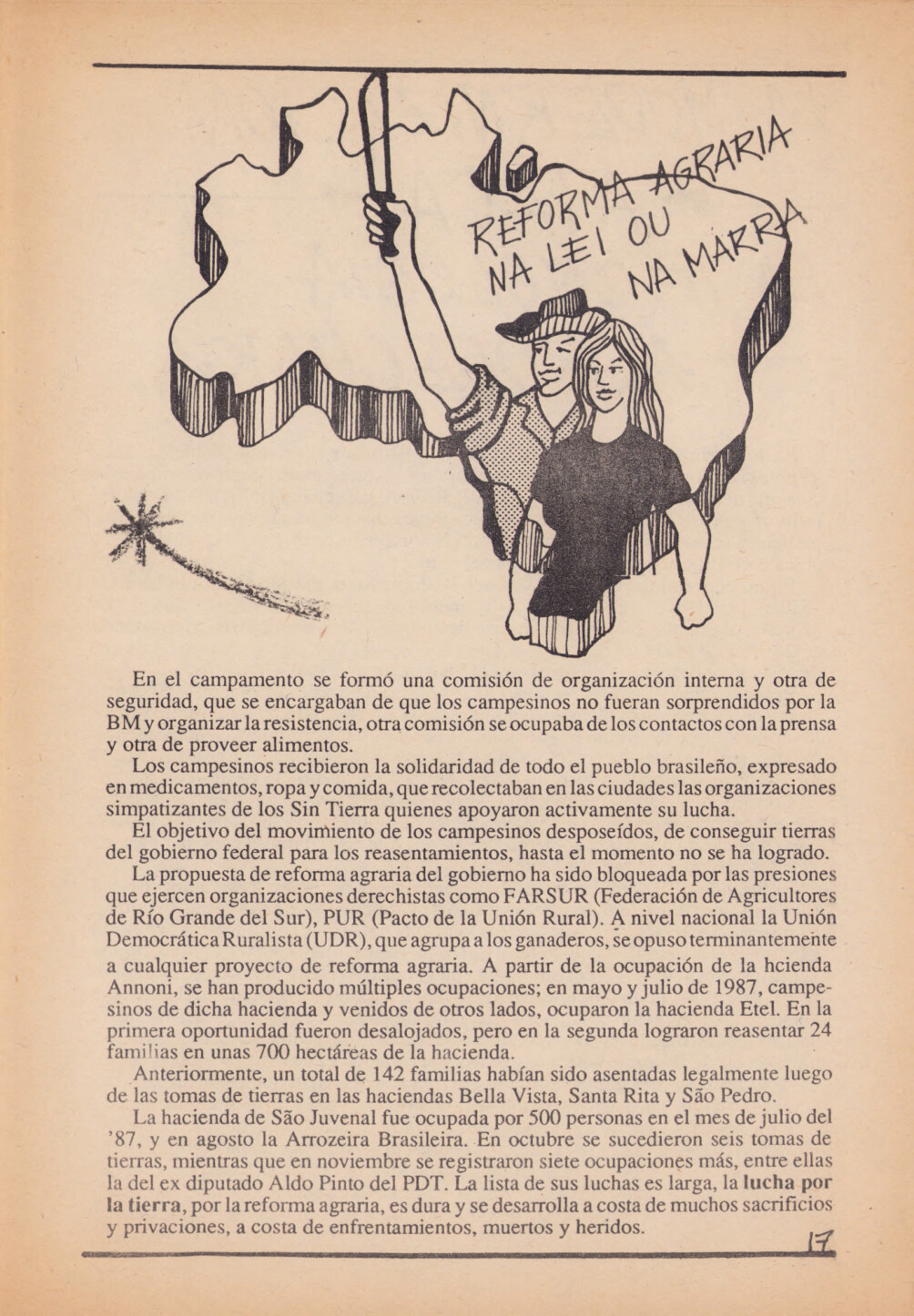 Medio de prensa Boletín del Movimiento por la Tierra Tipo Posdictadura Mes de publicación 7 Año de publicación 1988 Origen Colección Jacqueline Gómez Colección Jacqueline Gómez Publicacion completa