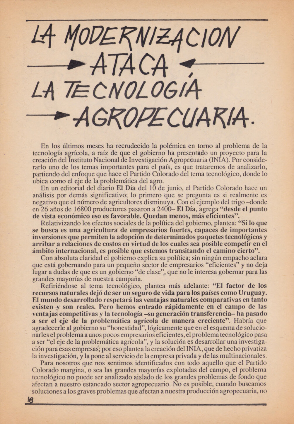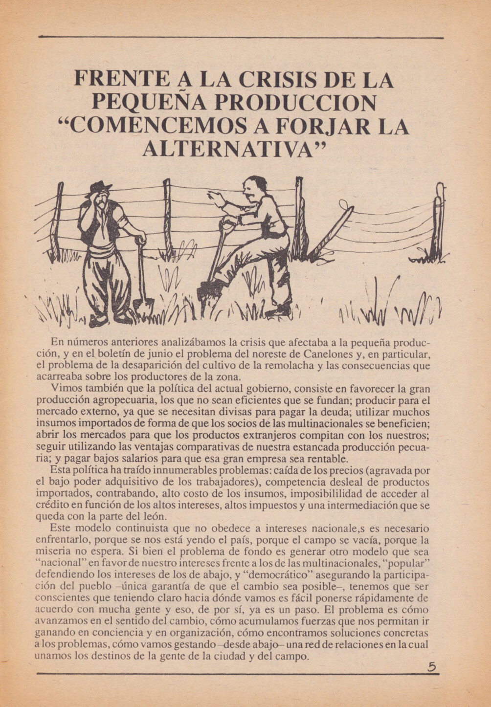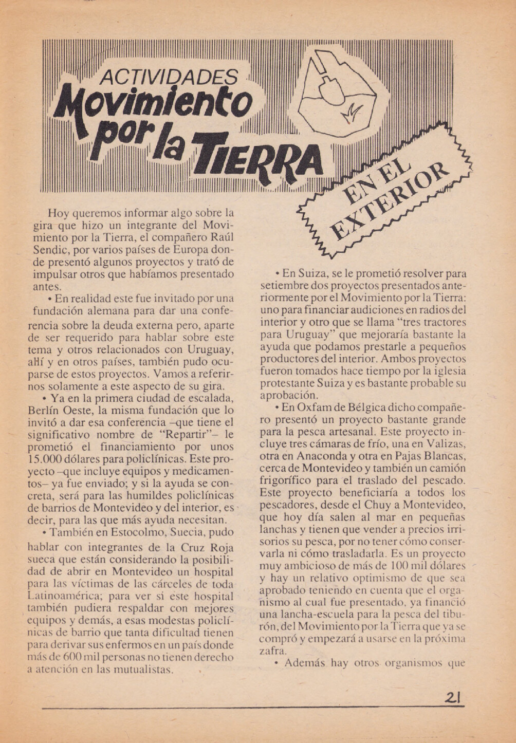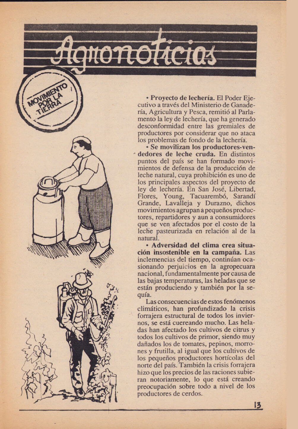 Medio de prensa Boletín del Movimiento por la Tierra Tipo Posdictadura Mes de publicación 7 Año de publicación 1988 Origen Colección Jacqueline Gómez Colección Jacqueline Gómez Publicacion completa