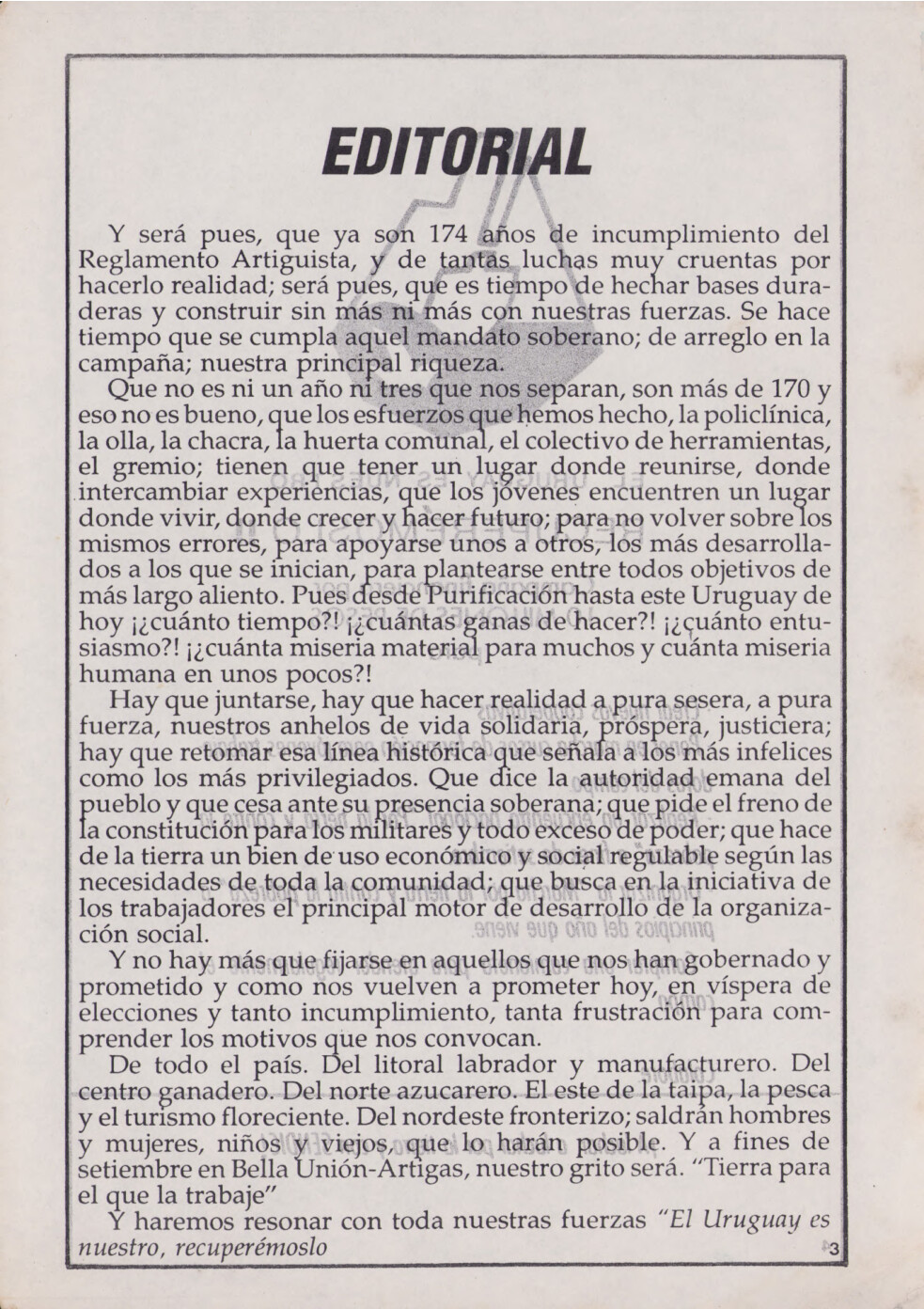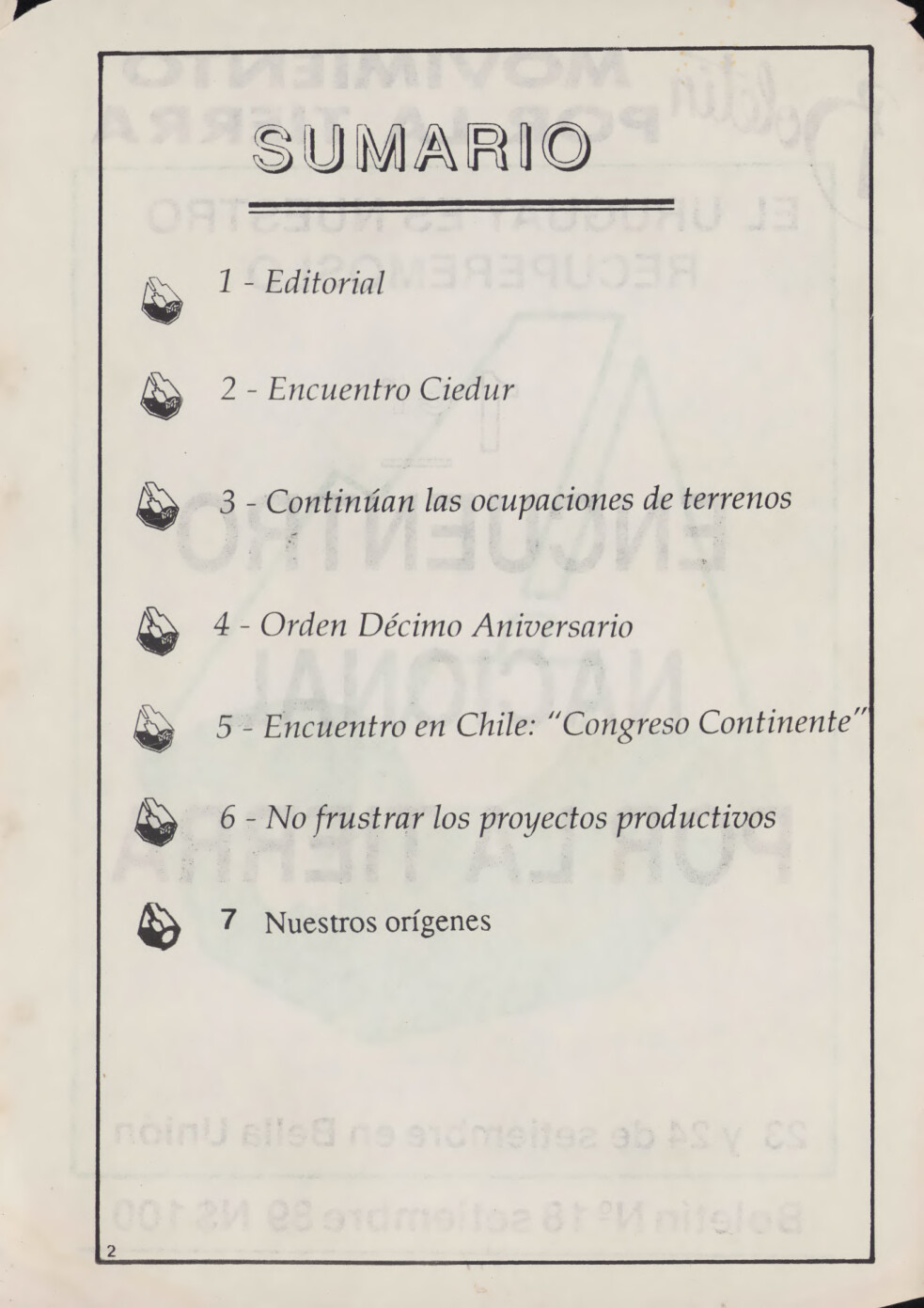 Medio de prensa Boletín del Movimiento por la Tierra Tipo Posdictadura Mes de publicación 9 Año de publicación 1989 Origen Colección Jacqueline Gómez Colección Jacqueline Gómez Publicacion completa