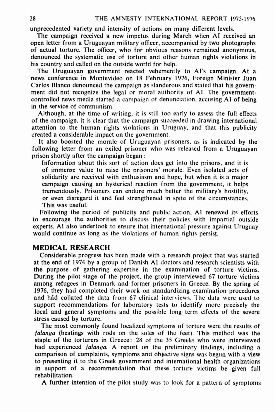 Medio de prensa Informe anual de Amnistía Internacional Tipo Extranjera Año de publicación 1976 Página 27-28 Origen Acervo de Amnistía Internacional Acervo de Amnistía Internacional Publicacion completa