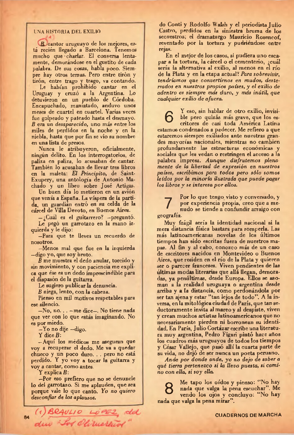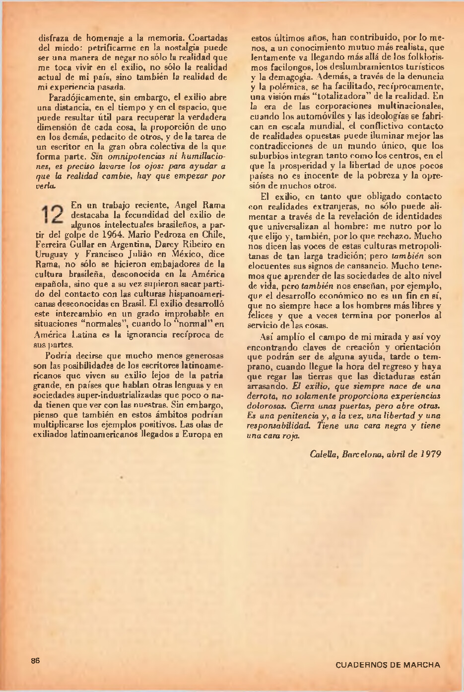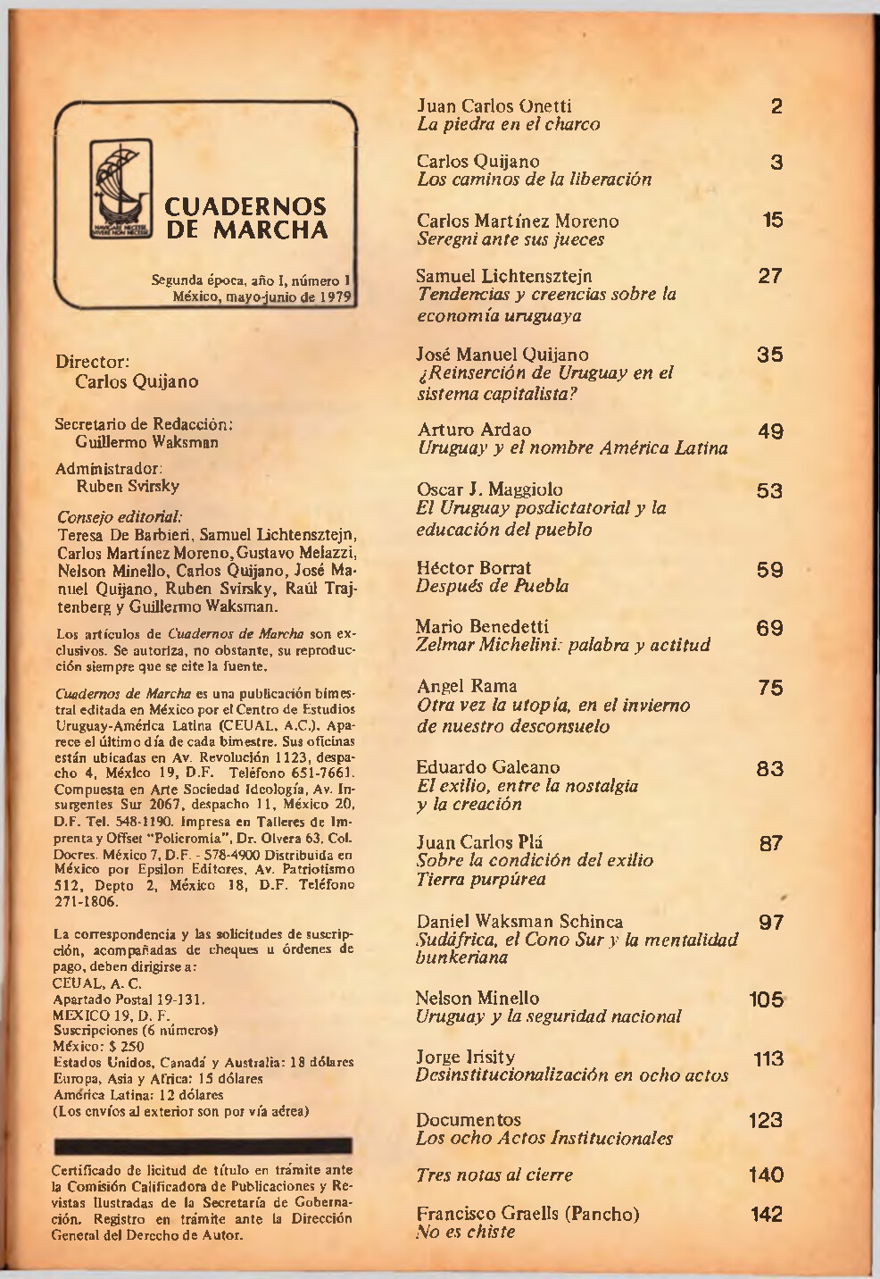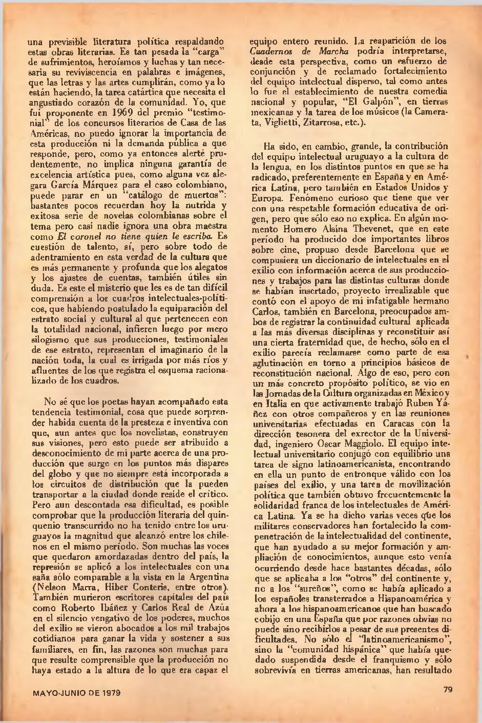 Medio de prensa Cuadernos de Marcha Tipo Del exilio Mes de publicación 6 Año de publicación 1979 Origen Anáforas Proyecto Anáforas Publicacion completa