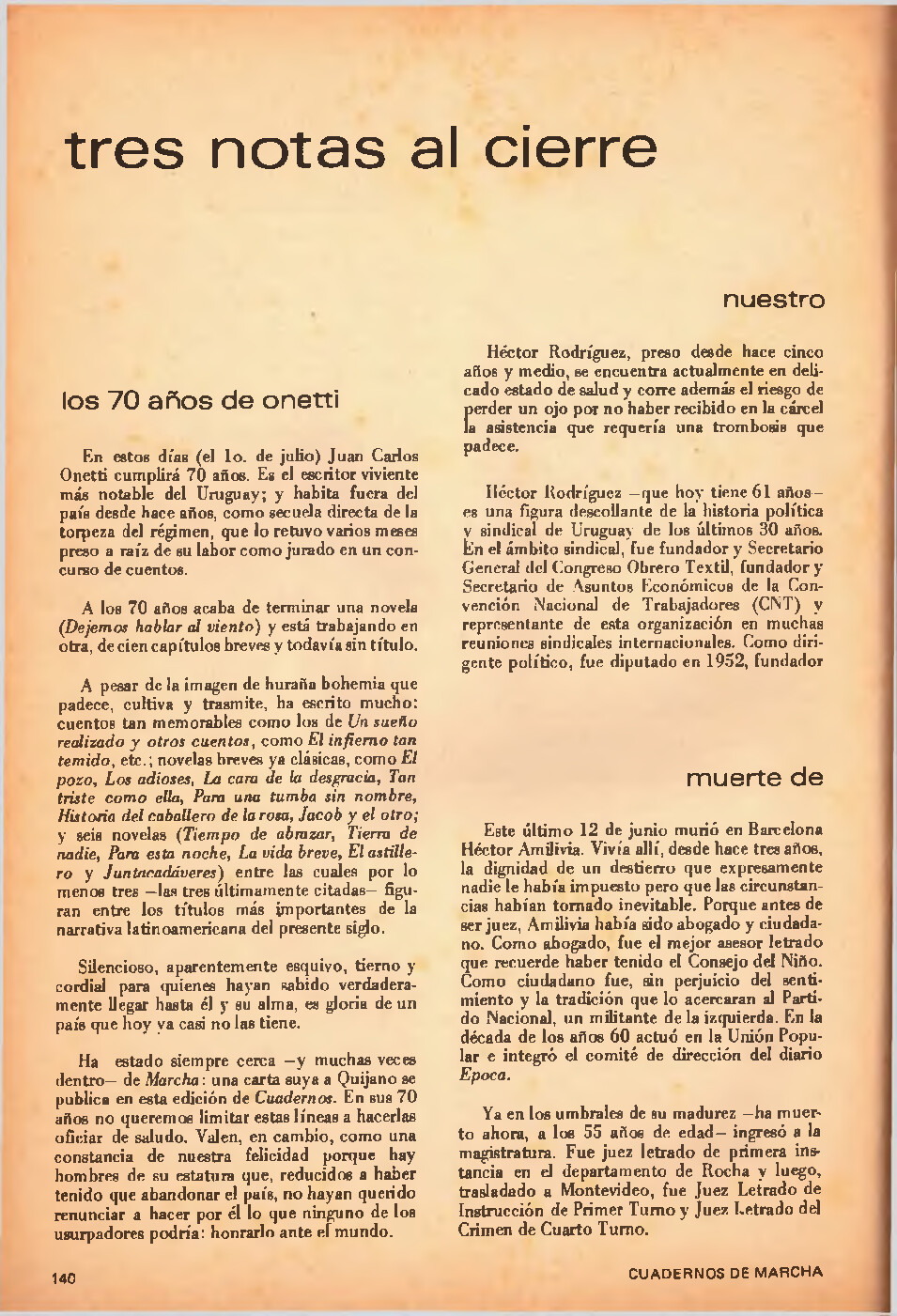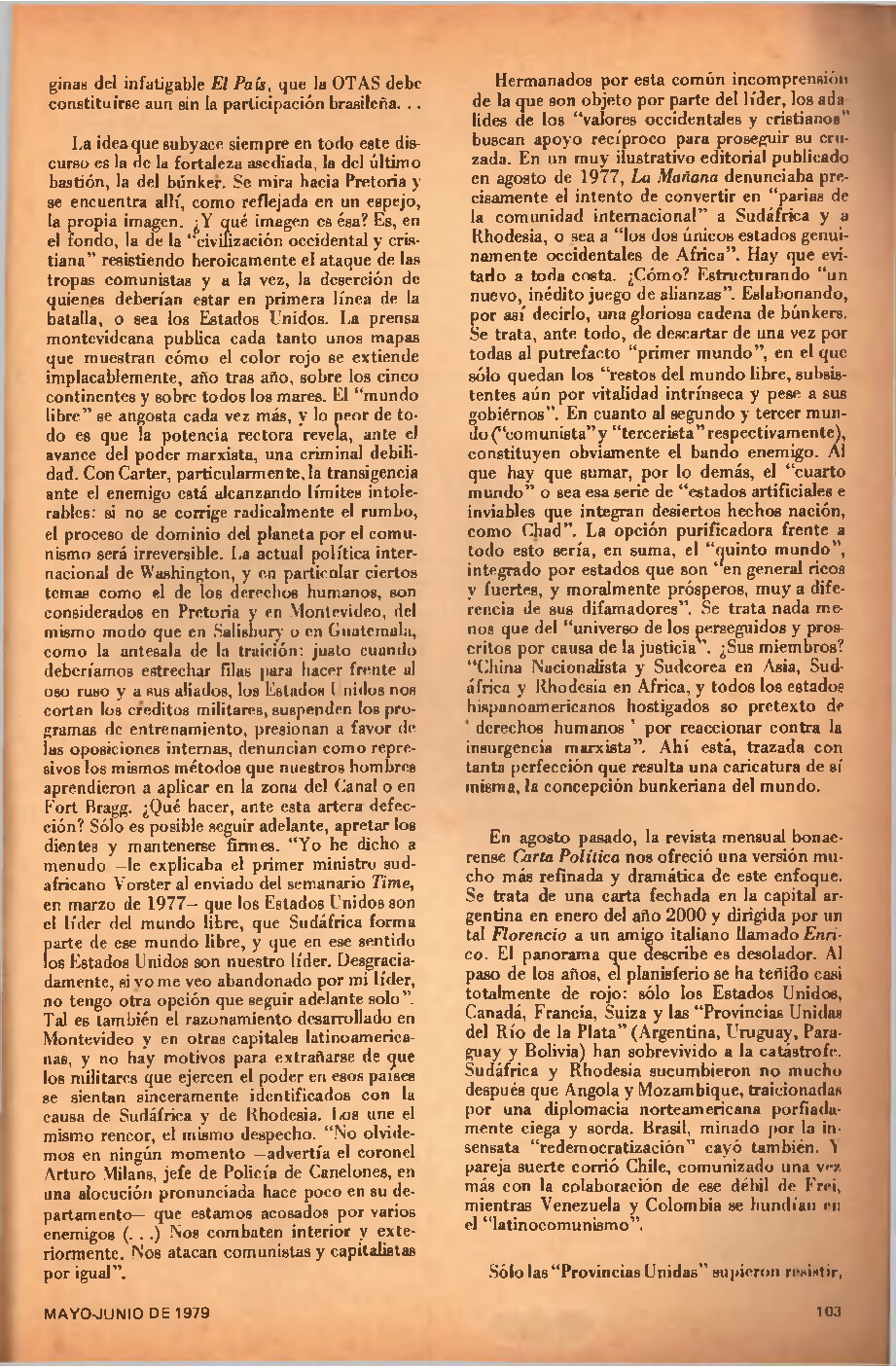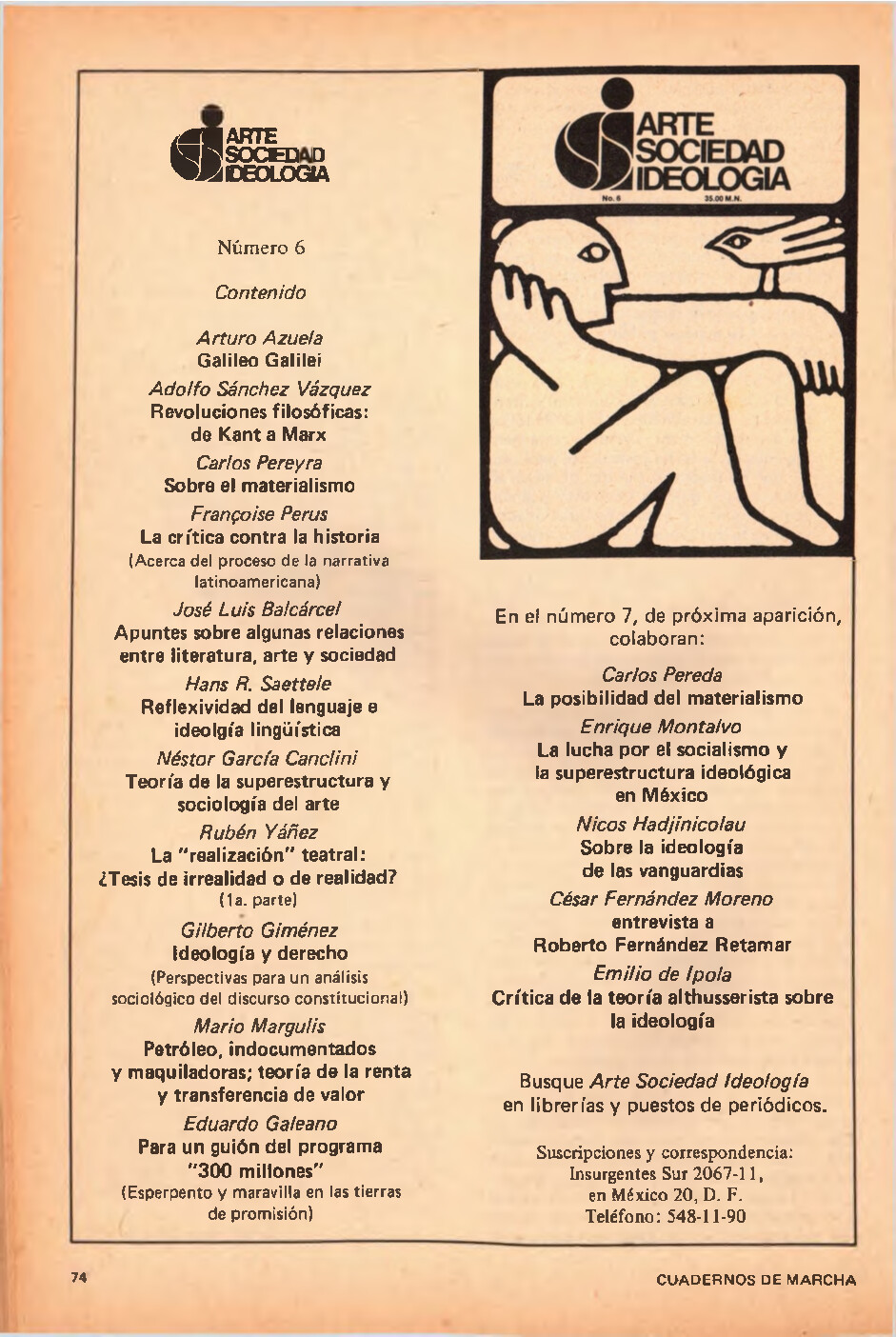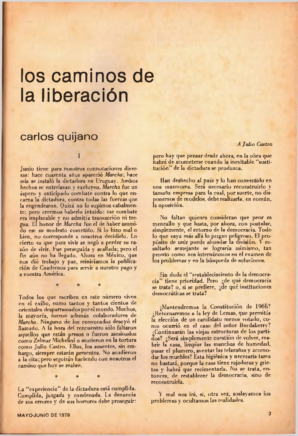 Medio de prensa Cuadernos de Marcha Tipo Del exilio Mes de publicación 6 Año de publicación 1979 Origen Anáforas Proyecto Anáforas Publicacion completa